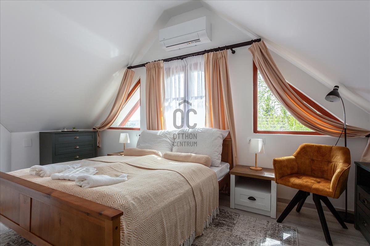 A Balaton északi partján, a Káli-medence egyik legbájosabb településén kínálunk megvételre egy teljes körűen felújított, két szinten elhelyezkedő, szálláshely üzemeltetésére kiválóan alkalmas ingatlant.