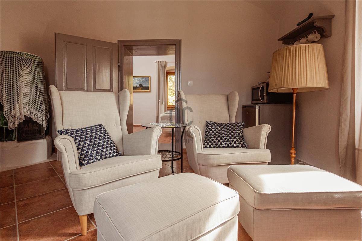 A vendégházban összesen 7 különleges hangulatú szoba és egy lakosztály került kialakításra. a ház műszakilag is kifogástalan állapotú, fűtéséről gázkazán gondoskodik, hűtését pedig klíma berendezések szabályozzák. Minden közmű rendelkezésre áll a házban.