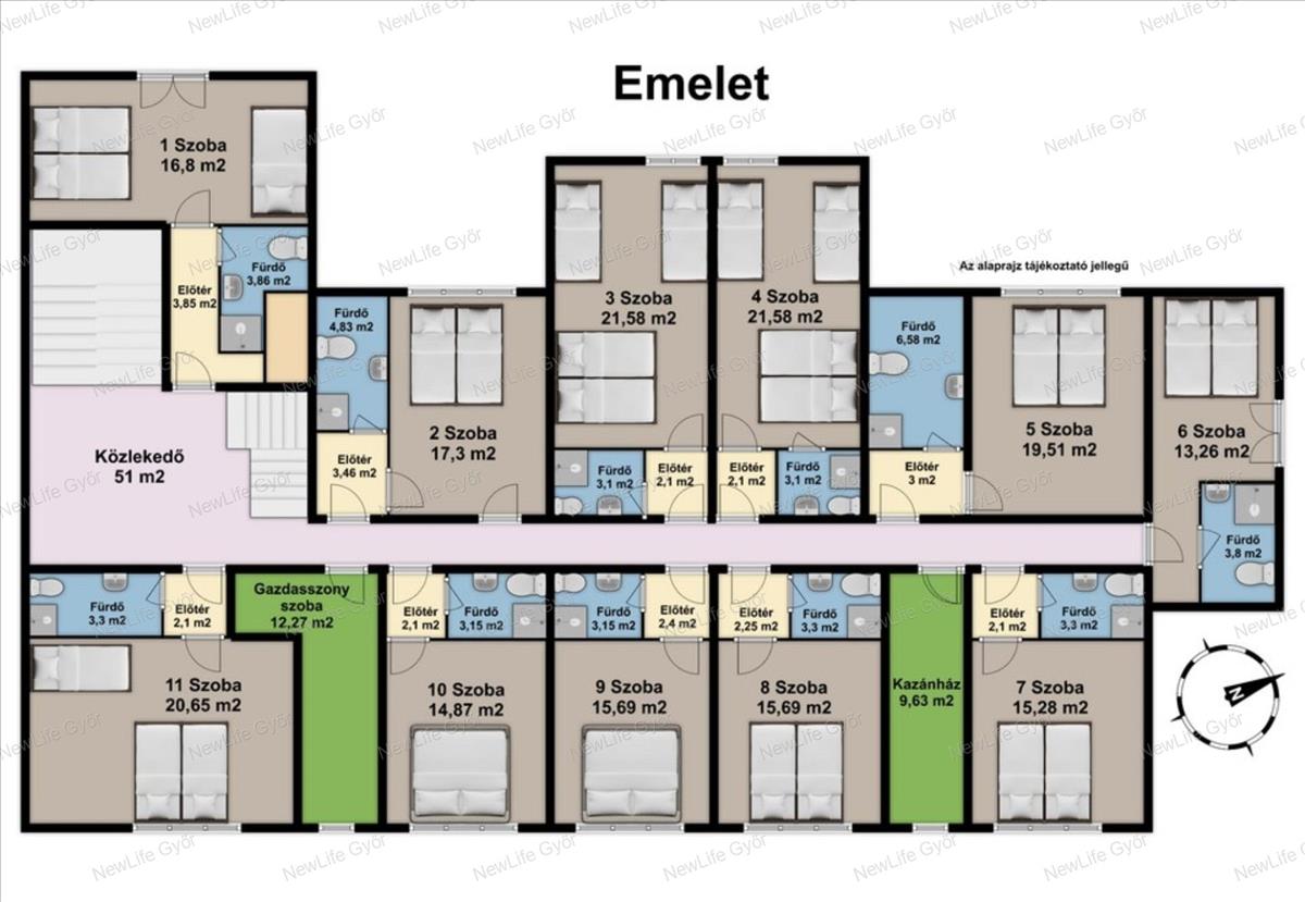 Ezt követő években pedig a tetőtérben is kialakításra került további 6 szoba.