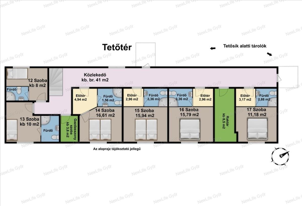 tetőtér: 6 szoba, 146 m2, belmagasság: 2, 66 m2