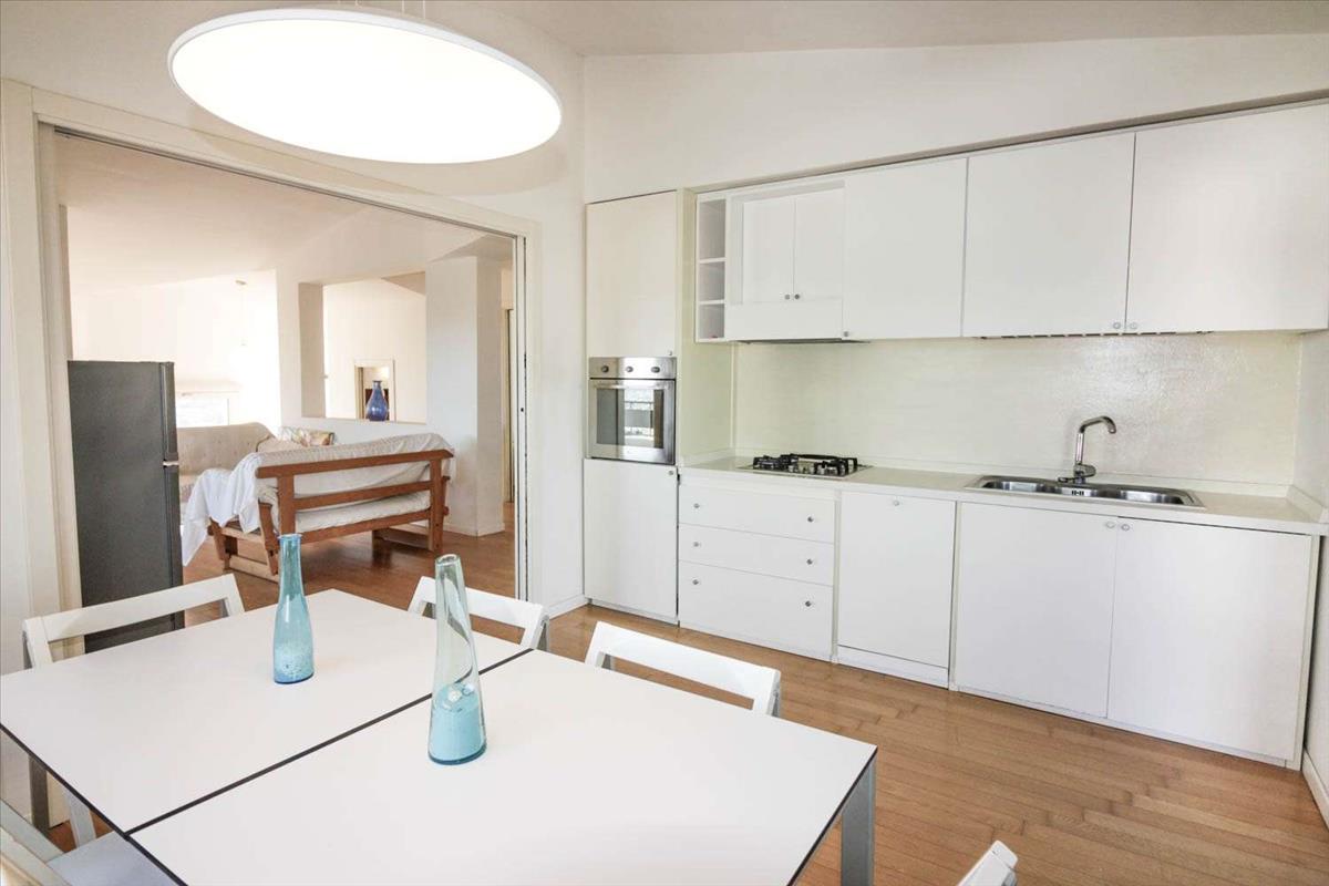 A három szobás apartman két fürdőszoba, külön konyha és tengerre néző veranda