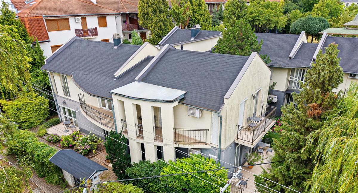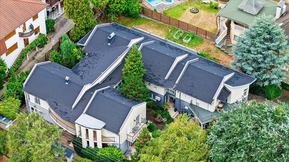 Telek: 1163 m² – parkosított, térkövezett közlekedőkkel