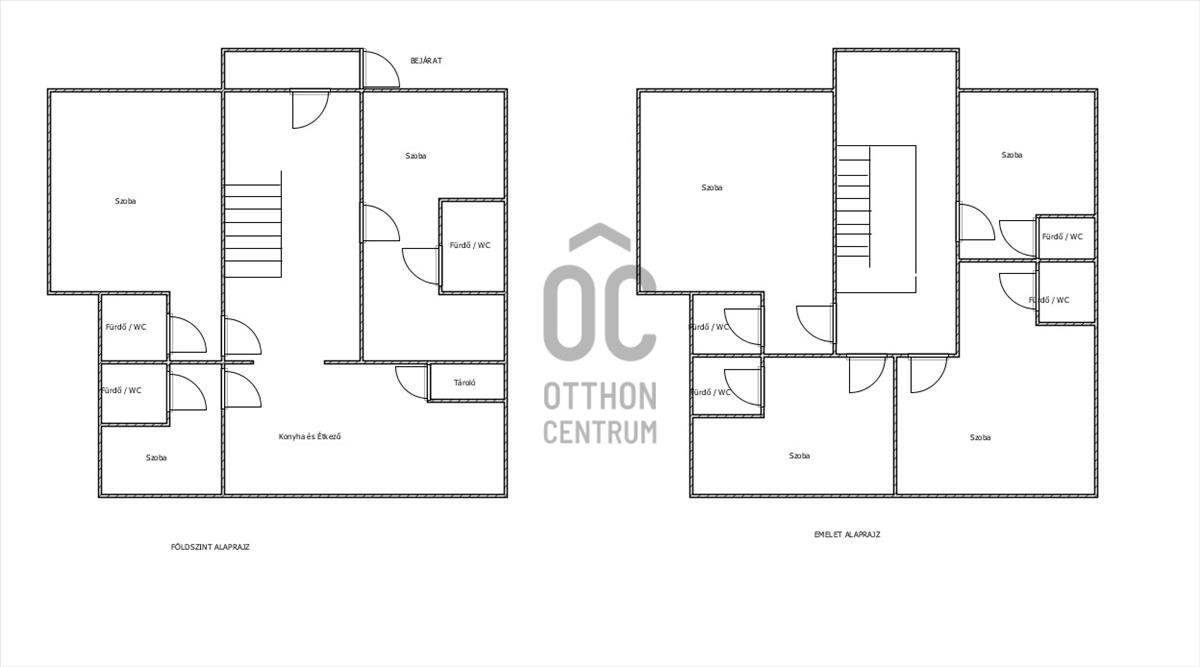 Földszint: 4 szoba - mindegyik saját fürdőszobával, konyha / étkező,