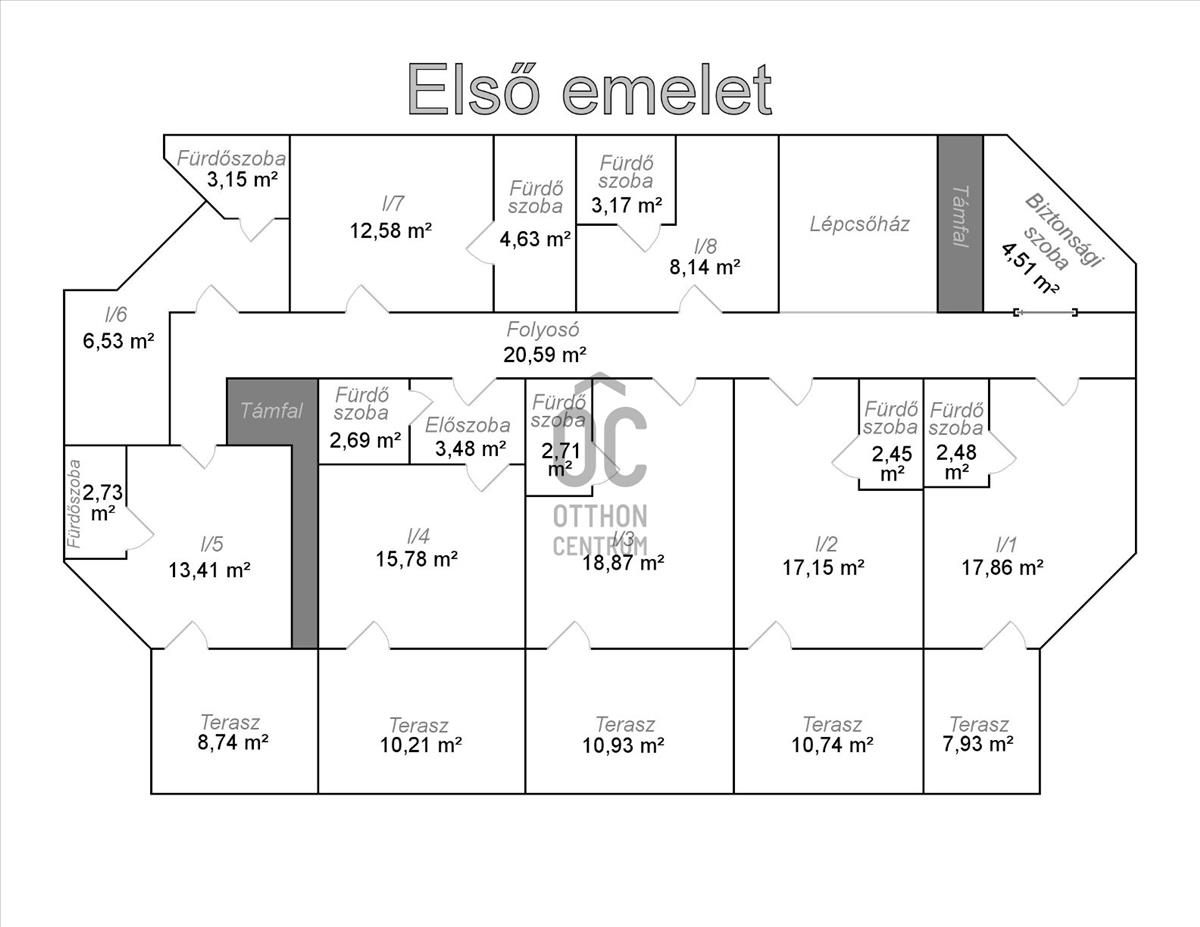 - Az első emeleti utcafronti szobákhoz külön erkély tartozik