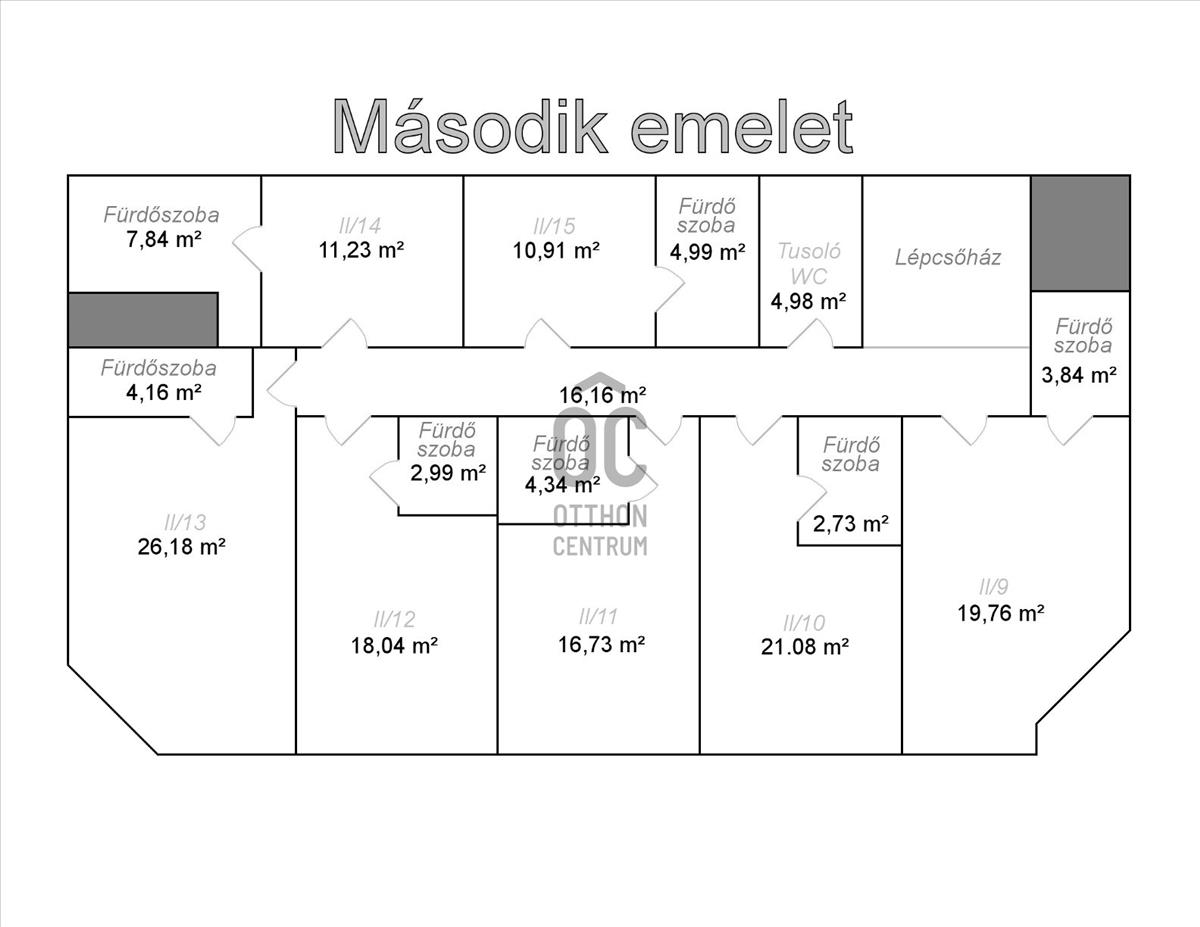 - 17 szobás, mindegyikhez tartozik külön fürdőszoba,