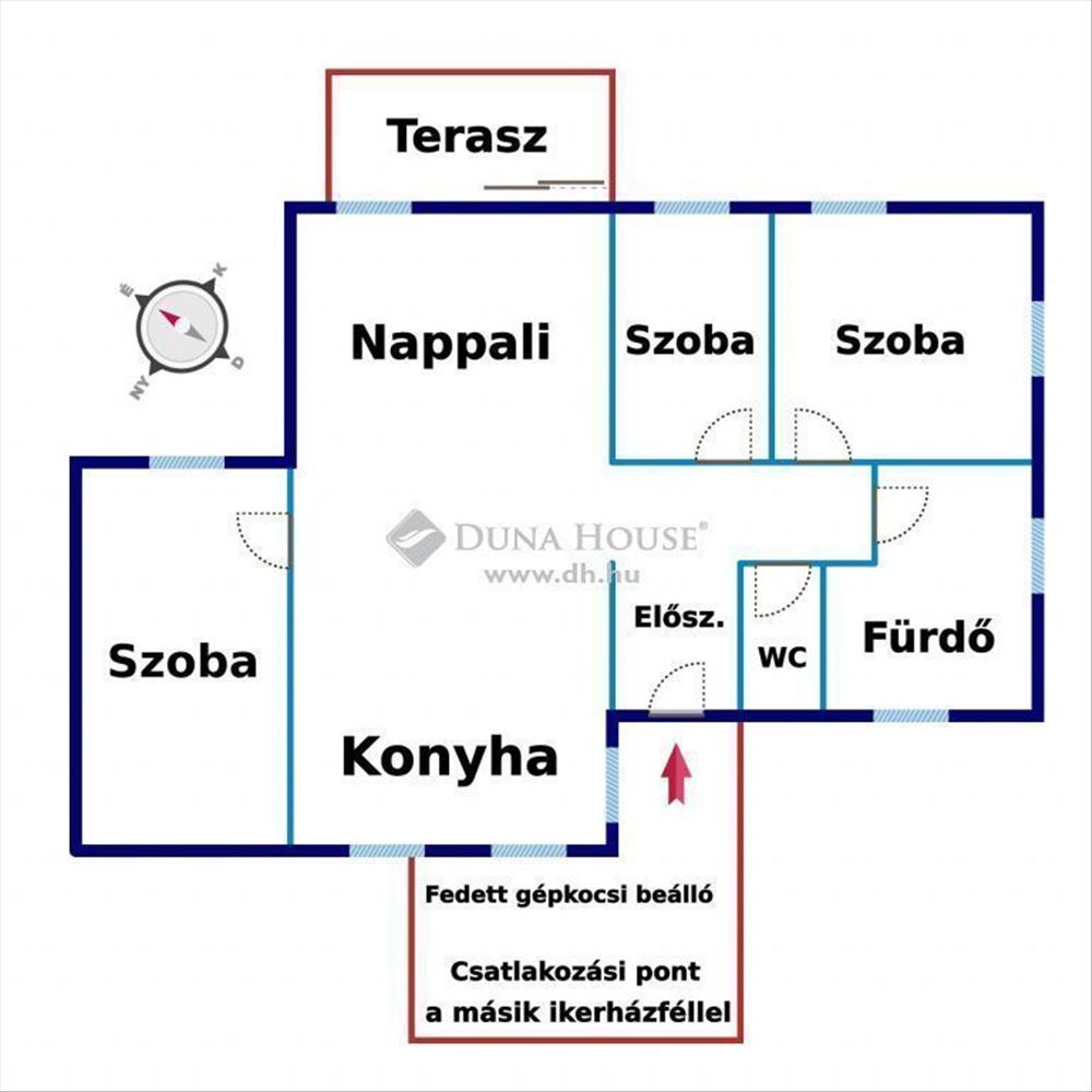 Helyiségeket tekintve a jelenlegi tervek szerint kialakításra kerül, 3 darab hálószoba, egy nagyméretű amerikai-konyhás nappali, előszoba és egy fürdő külön WC-vel. Az ingatlanhoz tartozó egyik szoba igény esetén belső garázzsá alakítható, illetve egy fedett gépkocsi beálló.