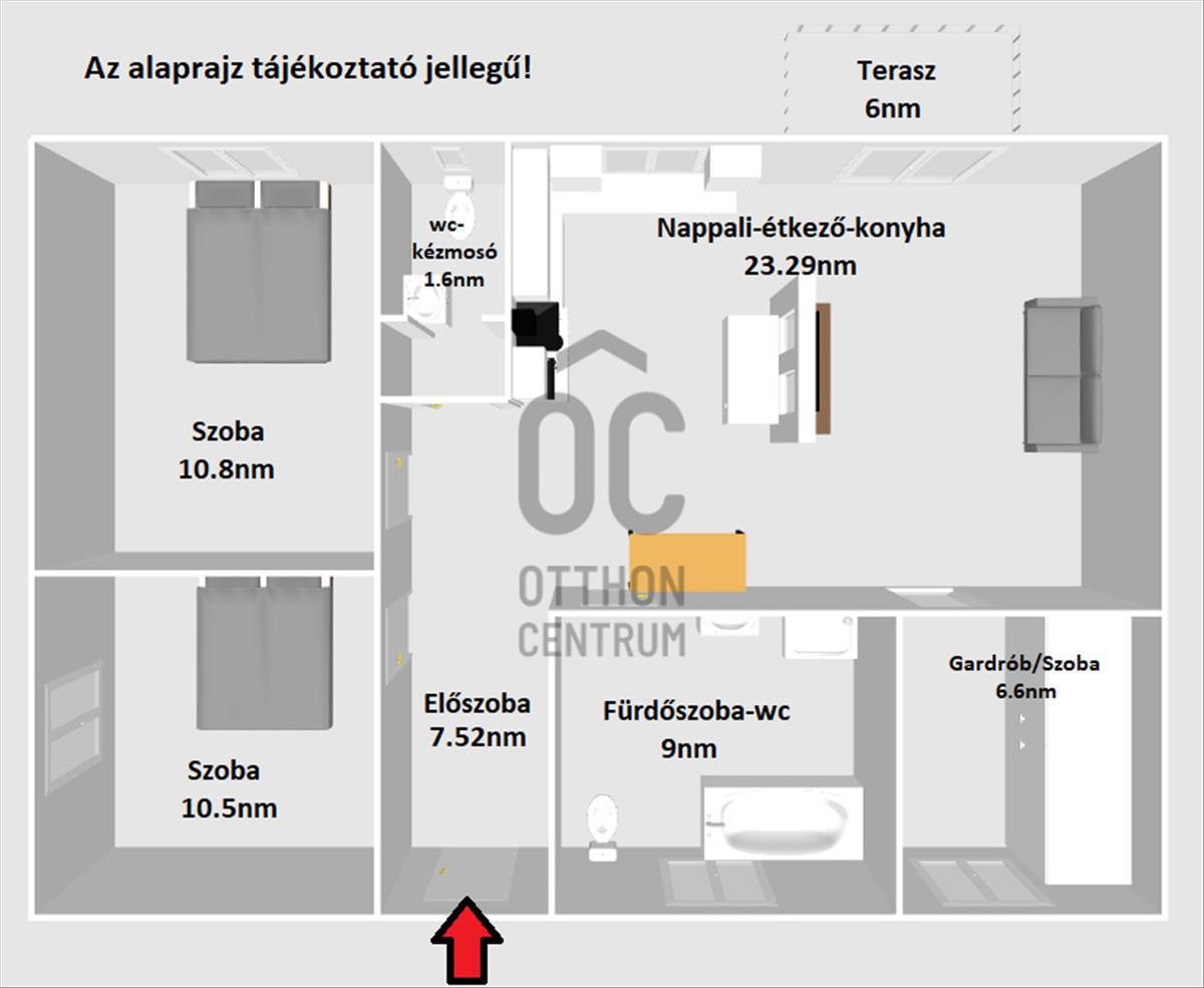 Az ingatlan nagy méretű 3 különnyíló szobával, valamint egy tágas, teljesen gépesített amerikai konyhás nappalival került kialakításra.