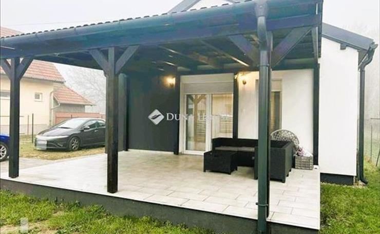 Az ingatan alapterülete 101 m2, fedett terasz 27 m2, kiváló kialakítású közös fal a szomszéddal tároló.