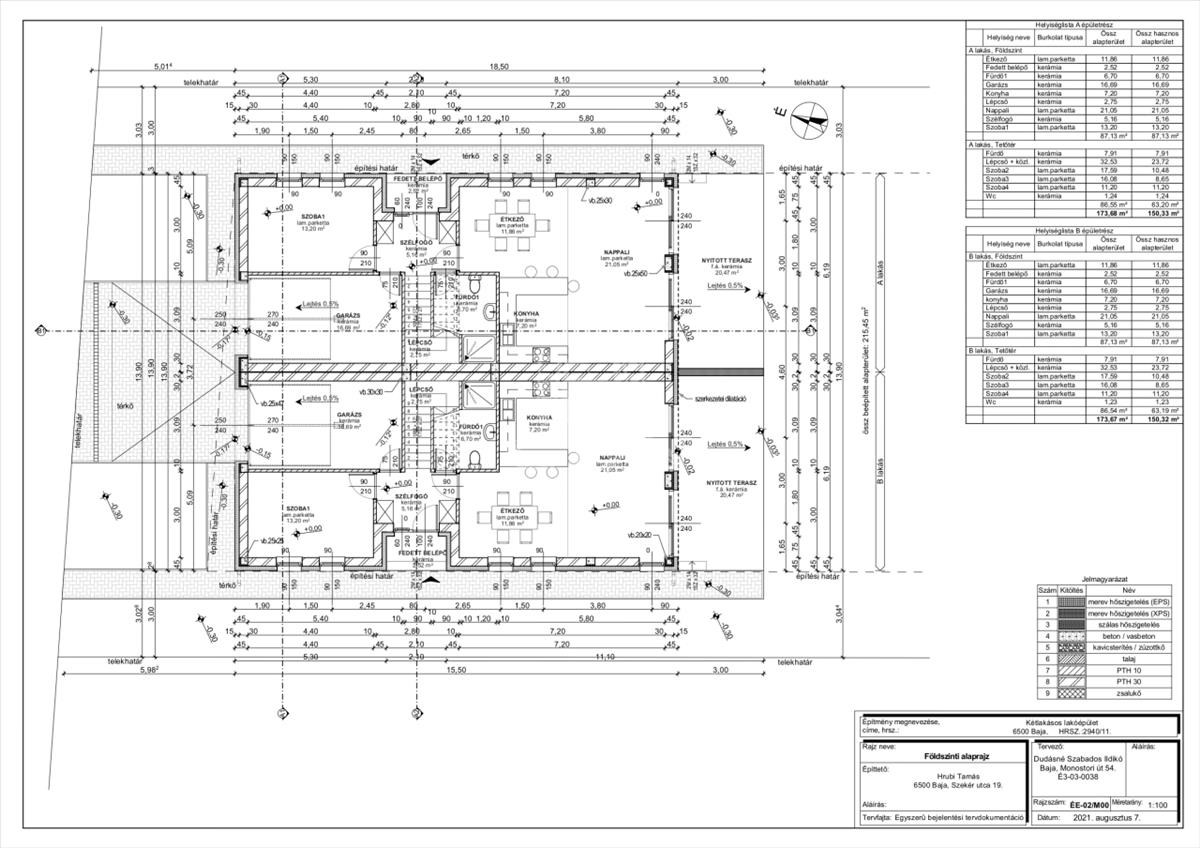 Mindkét lakáshoz terasz, garázs és saját udvarrész tartozik.