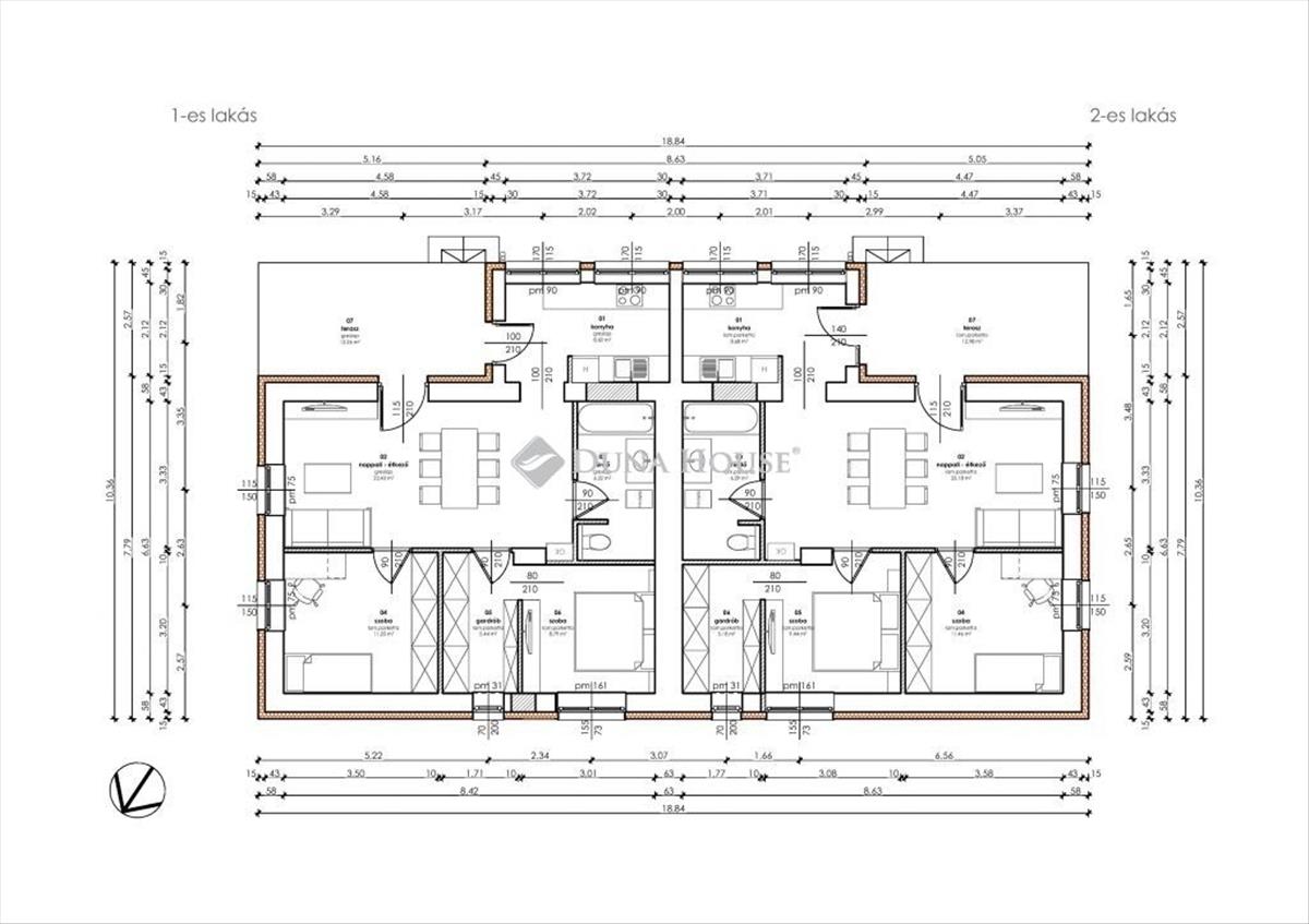 Kialakításuknál különösen figyeltek arra, hogy a két lakrész egymástól a lehető legjobban elkülönüljön, ezért közös fal szobák között nincs csak konyhák és fürdők mentén, illetve a gardróbnál!