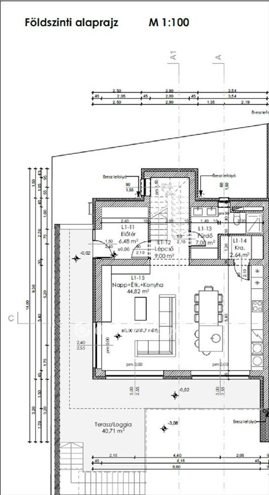 - Amerikai konyhás nappali: 44, 82 m2