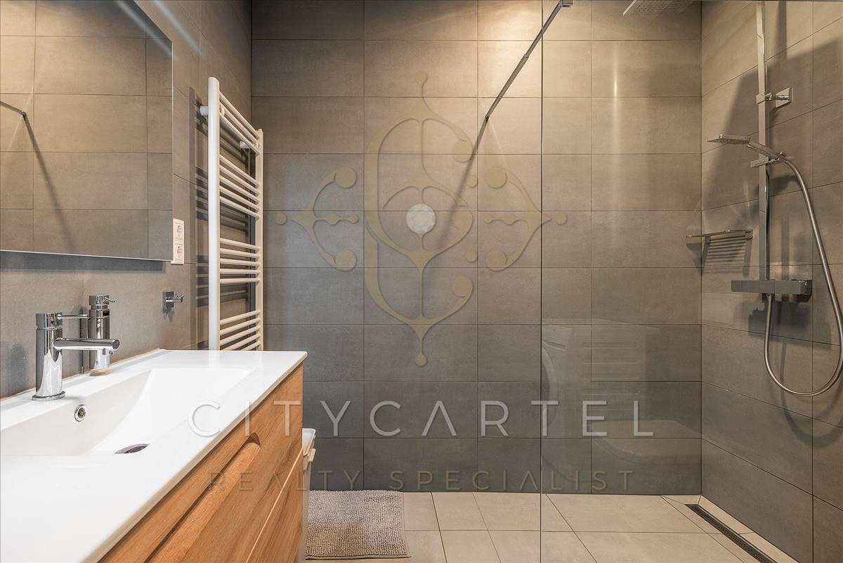 A jelenlegi tulajdonosok gyönyörű parkosított kertet alakítottak ki, mindkét lakáshoz egyenként 19 négyzetméteres terasz tartozik.