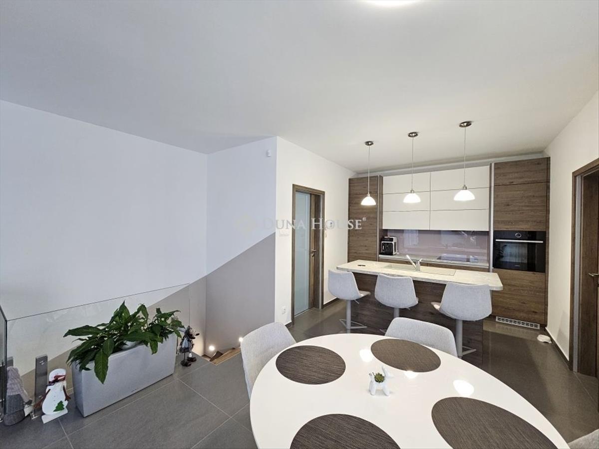 Az alsó szinten található 3 hálószoba, egy közlekedő, tároló és egy külön bejáratú gépészeti helyisèg. a felső szinten található a főháló, illetve a gyönyörű panorámával rendelkező amerikai konyha ètkezővel, nappalival, ahonnan kilèpve egy 25 m2 teraszon találjuk magunkat.