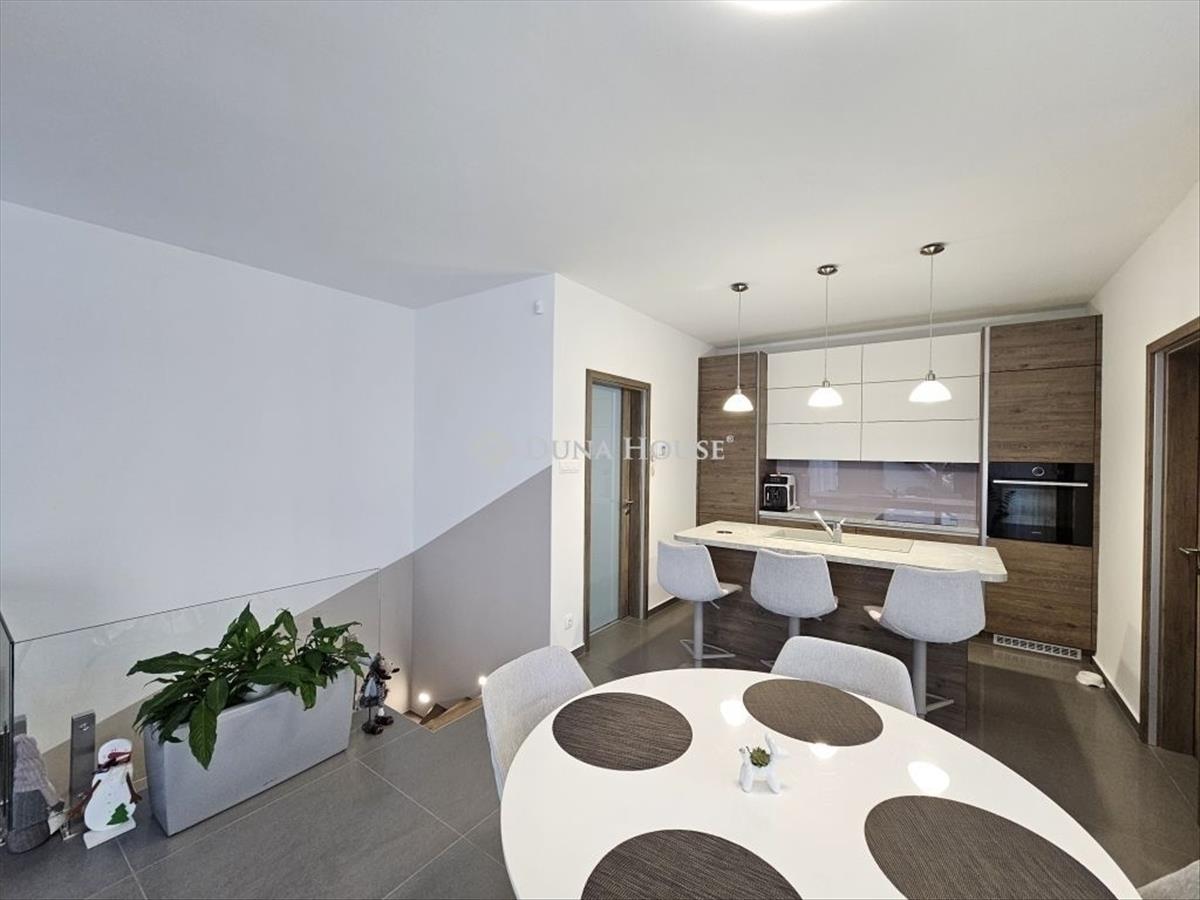 A felső szinten található a főháló, illetve a gyönyörű panorámával rendelkező amerikai konyha ètkezővel, nappalival, ahonnan kilèpve egy 25 m2 teraszon találjuk magunkat.