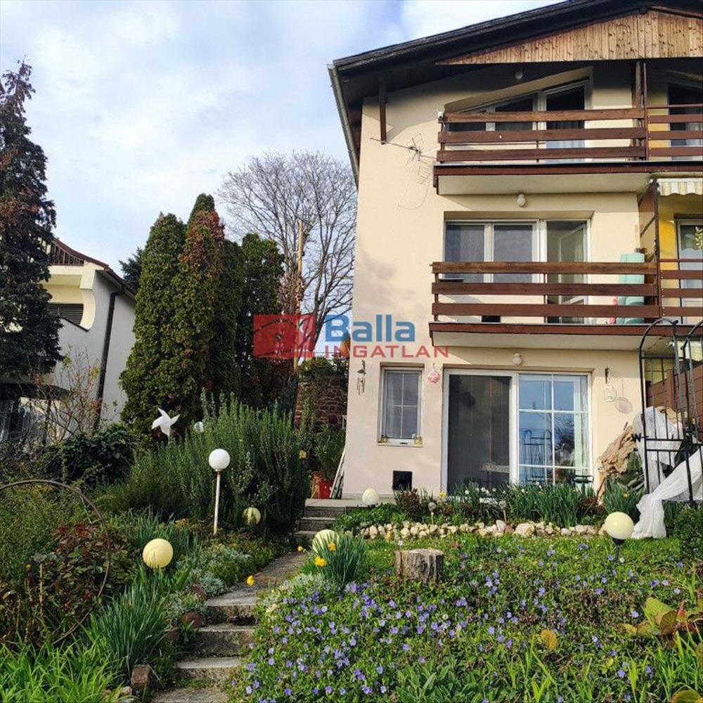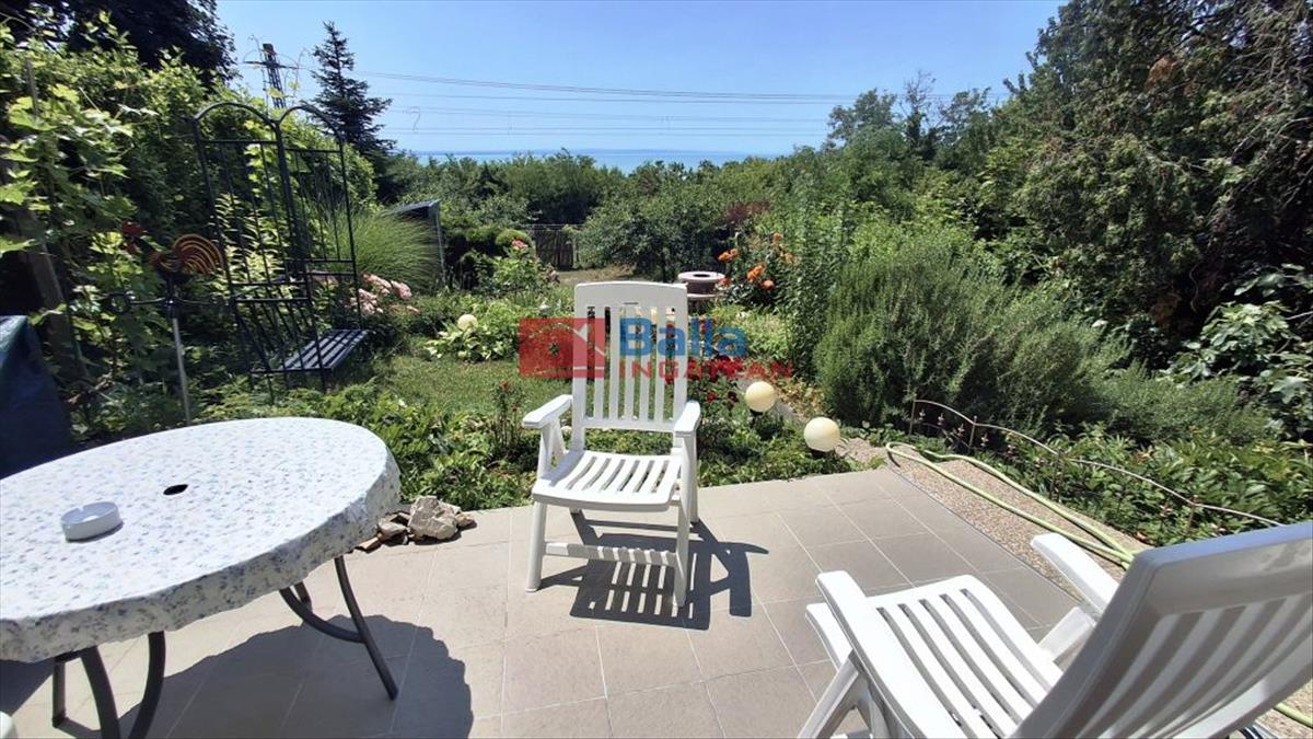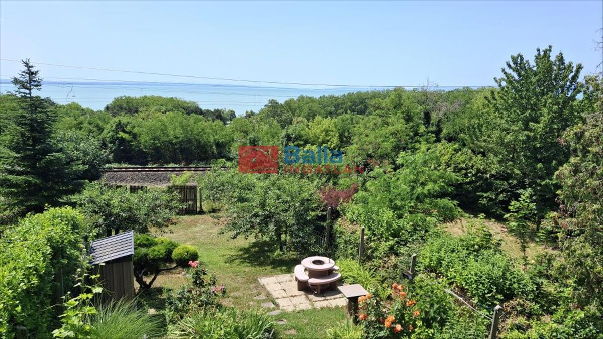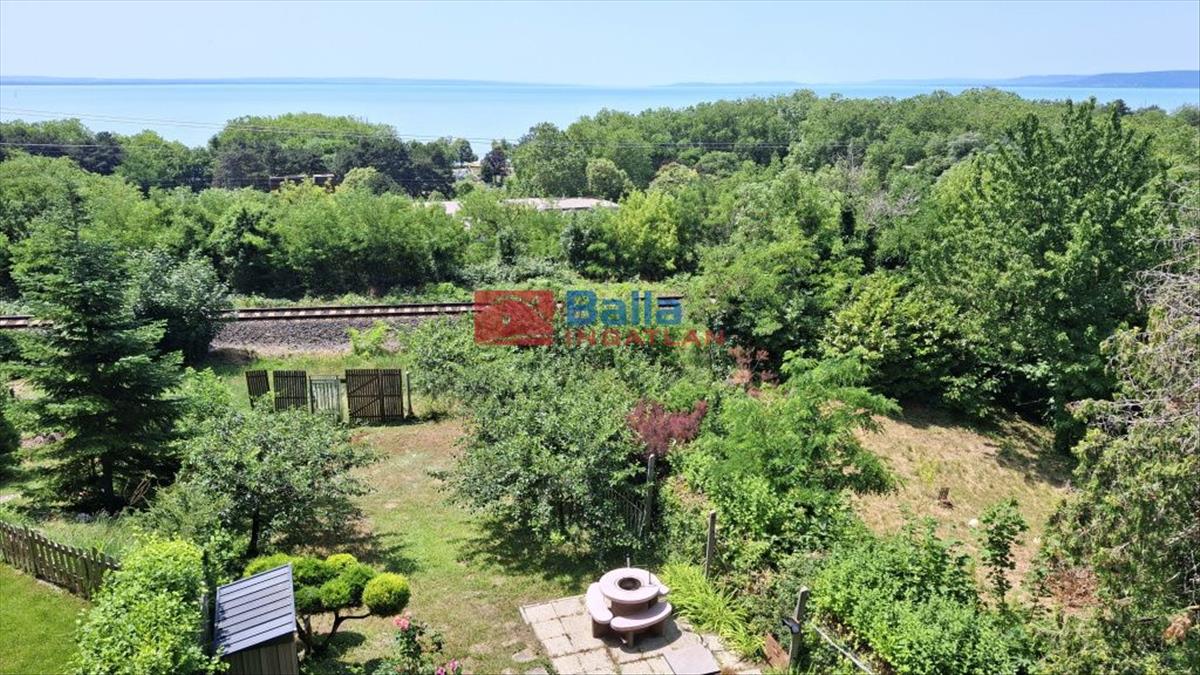 Az igényesen felújított ingatlanból három szintről csodálhatjuk a Balaton egész keleti medencéjét, a Tihanyi - félszigettel egyetemben. a 96 m2 + 37 m2 (terasz, erkély) alapterületű, 5 szobás, önálló helyrajzi számmal rendelkező ikerház két zárt autóbeállóval, 370 m2 saját kertkapcsolattal rendelkezik.