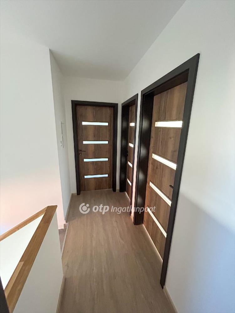 A felső szintet belső lépcsőn keresztül közelíthetjük meg, ott található: 3 hálószoba, mely mindegyike 12nm-es, kádas fürdőszoba- wc, illetve egy közel 20nm-es erkély melyet az egyik hálószobából közelíthetjük meg.
