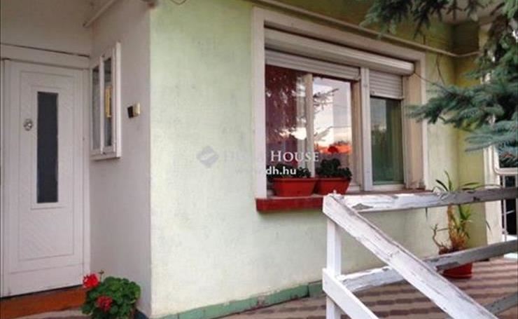 A ház előkertes (oldalt is van még egy pici terület), a telken egy garázs és egy tároló is található.