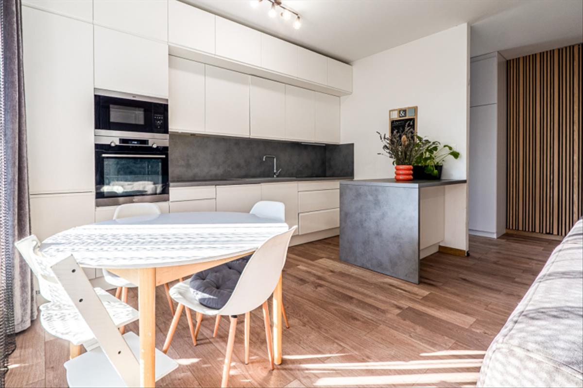 világos, tágas konyha–étkező–nappali egy légtérben