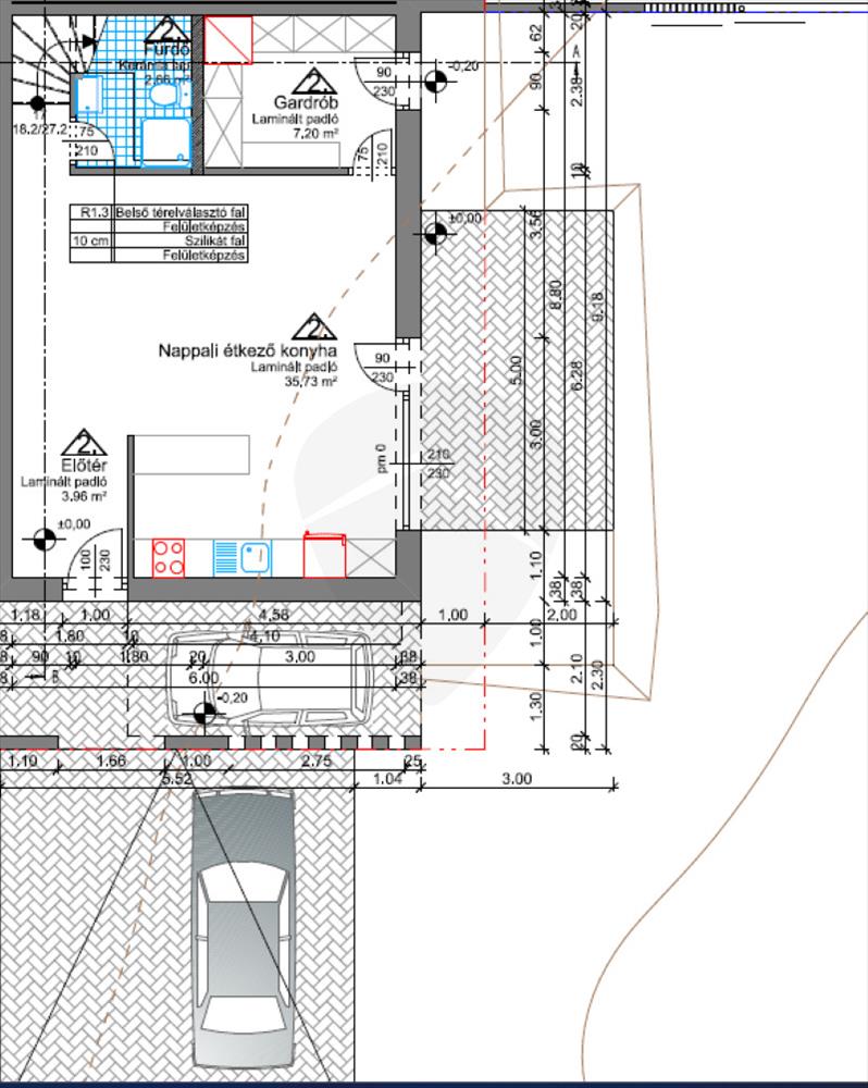 Az udvarban viacolorral burkolt, fedett kocsibeálló található.