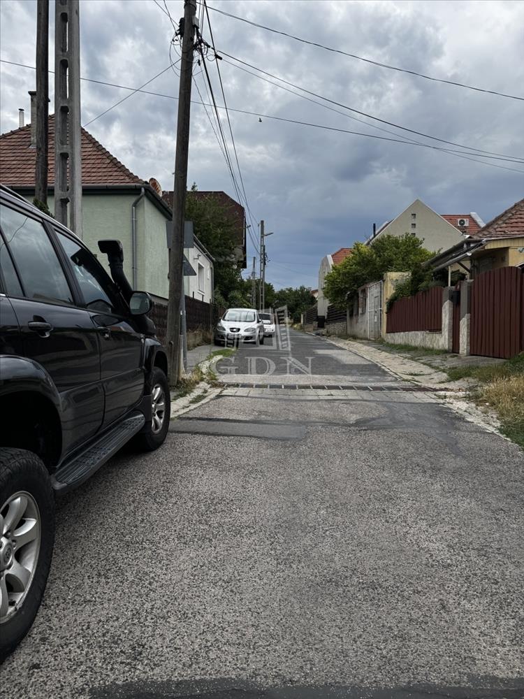 Enyhén lejtős telek, két utcafronti bejárattal (kb. 15 M széles)