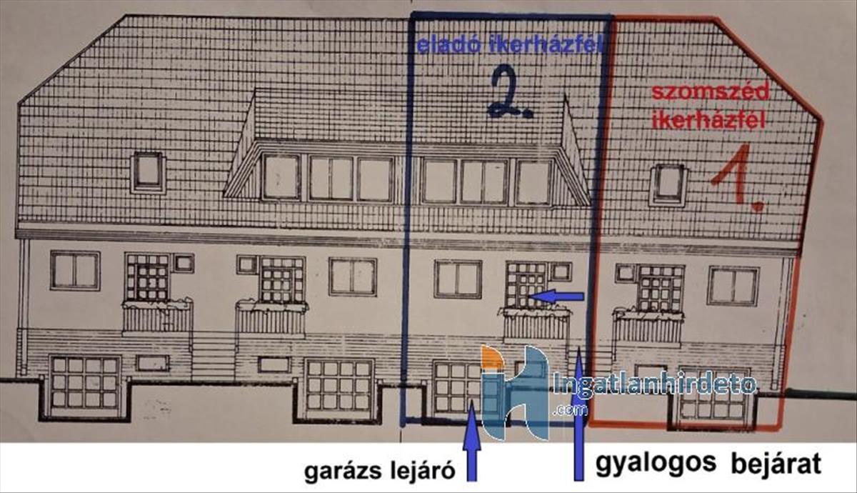 Az ikerházfél 195 m2-es + 2 db 13 m2-es terasz és külön kert tartozik hozzá.
