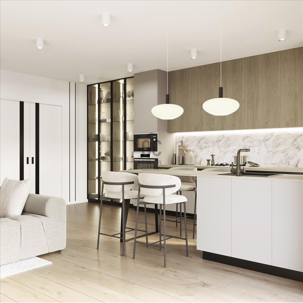 * Nagyméretű, amerikai konyhás nappali