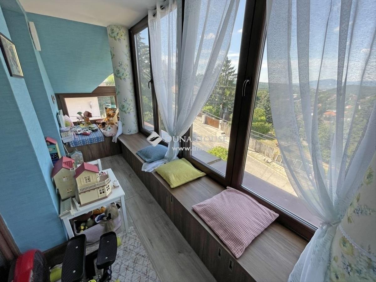 A pilisi hegyekre, dombokra panorámás, br. 237m2-es, duplakomfortos, csodás hangulatú és állapotú, 4 szobás, klímás, új kondenzációs kazánnal szerelt családi otthon eladó Remetekertváros egyik csendes zsákutcájában. a kivételes panoráma, természet közeli elhelyezkedés, kedves szomszédok és jó levegő mellett, a vásárlási lehetőségek, a kiváló tömegközlekedés, óvoda, iskola, orvosi rendelő, posta is adott a közelben. a jól karbantartott, szigetelt ikerházfélben új kondenzációs kazán lett beépítve (2023. 10. ), De 6 éve nagyobb felújításon is átesett, melynek során bővítették a (nappaliból és hálószobákból is) panorámás életteret, beépítették és kibővítették a teraszokat (össz. : 73m2), előtető épült a ház köré, új burkolatokat, festést, gépészetet is kapott, új lépcsőkkel, intim, illetve panorámás pihenő terekkel és játszótoronnyal. a nyílászárók is cserélve lettek, színben harmonizáló kerettel, az új fűtéscsövek a falba lettek süllyesztve, díszburkolat került a nappali látványkandallója köré, rejtett, spot- és ledvilágítótestekkel látták el a nappalit, a még otthonosabb érzés érdekében. a konyhabútor, a beépített mosogatógép, az indukciós tűzhely, a bojler és a garázskapu emelőmotor is cserélve lett. a hatalmas 36m2-es, panorámás nappalihoz egy légtérben, de mégis szeparáltan, szinteltolással csatlakozik a 25m2-es étkezős konyha, közle 40m2 panorámás terasszal. Az alsó (utcaszinten) 42m2 garázs, 16m2 tároló helyiség és egy gépészettel kombinált mosókonyha is szolgálja a lakókat. a felső szinten, a fürdőszoba mellett, 3 hálószoba kapott helyet, melyből kettőt egy beépített terasz köt össze, ahonnan még télen is gyönyörködhetünk a lélegzetelállító panorámában, így az igazi játszós, olvasókuckóvá alakult. a harmadik hálószoba tökéletesen alkalmas a szülőknek, amely természet-közeli hangulattal, intim terasz és kertkapcsolattal szolgálja ki őket a hátsó, többszintes kert irányában. a külső szigetelésnek, új gépészetnek, nyílászáróknak, fűtésrendszernek köszönhetően alacsony fenntartási költséggel számolhat új tulajdonosa is, valamint a számos beépített bútor, tárolásra alkalmas tér miatt is kiváló lehetőség, ha családjával szeretne költözni eme csodás, vidékies, csendes, de mégis jól megközelíthető exkluzív környezetbe. a környéken több iskola helyezkedik el, közöttük a Gustave Eiffel Francia Óvoda, Általános Iskola és Gimnázium, a Klebersberg Kuno Általános Iskola és Gimnázium, Gyermekek Háza, Waldorf Iskola, sek Budapest, továbbá az ingatlantól nem messze található a budapesti Amerikai Nemzetközi Iskola is. a közelben találhatóak orvosi rendelők, sportolási és bevásárlási lehetőségek (Stop-Shop, Széphalom, Hüvi), a tömegközlekedés pár perces sétatávolságra (57/64/64a/164/264/964/956 buszok) és Hűvösvölgy vá. Is mindössze 10 perc alatt elérhető. a teljesen tehermentes ház személyes megtekintése előre egyeztetve, rugalmas időpontokban lehetséges. ***** Ha Hitelt Venne Fel, Vegye Fel a Legjobbtól, Személyre szabott ajánlatért hívjon, vagy küldjön üzenetet! ********** Hitel, CSOK és Babaváró ügyintézés garantáltan a leggyorsabb, legjobb feltételekkel, díjmentes előzetes tanácsadással! *****