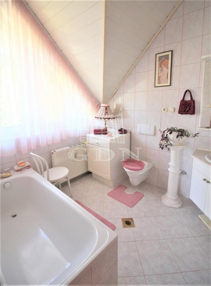 Műszaki tartalom ( részlet ): 40 cm vastag tégla + valódi klinkertégla burkolat, bramac betoncserép, 25 cm üveggyapot + fólia hőszigetelés, kerámia, gránit, parketta burkolatok, egyedi fa falburkolat, kamerás - távfelügyelethez bekötött biztonsági videórendszer, fűthető garázs lehajtó, medence ( fűthető, víztisztító rendszerrel, ellenáramoltatóval egyaránt felszerelt ), padló és radiátor fűtés, központi porszívó, kandalló, hang-, és hőszigetelt műanyag nyílászárók, biztonsági fólia, szúnyoghálók, elektromos redőny, reluxa, beépített részben gépesített konyha mindkét lakásban, beépített szekrények, szemet gyönyörködtető csillárok, stb.