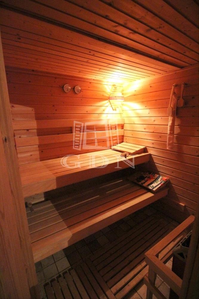 ALAGSOR: 2 állásos garázs mellett, fitness terem, 4 fős szauna, zuhanyzó, külön helyiségben a mosókonyha, gépészeti helység.