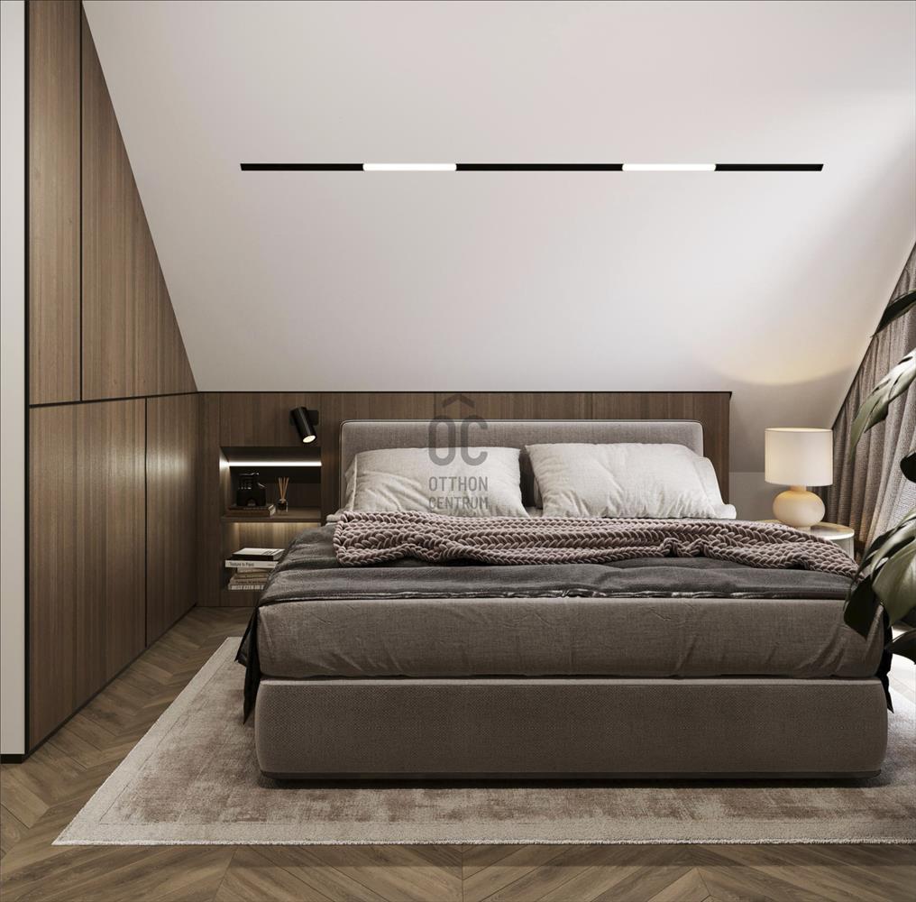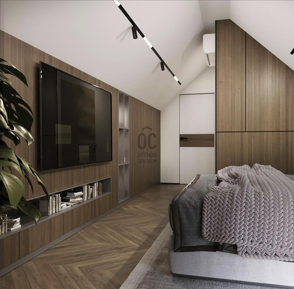 A felső szinteken kialakított hálószobák nyugodt, intim életteret biztosítanak.