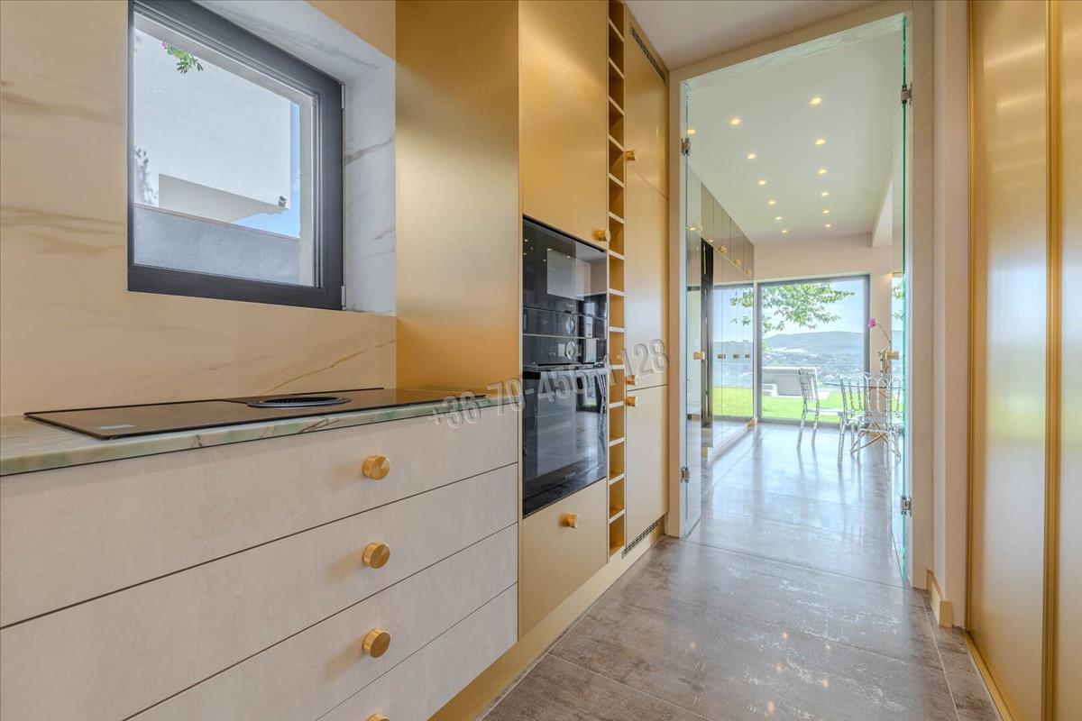 Eladó egy luxus minőségben újjáépített ikerház látványos örökpanorámával, jacuzzival, infraszaunával, nagy garázzsal, hőszivattyús padlófűtéssel, egyedi belső kialakítással.