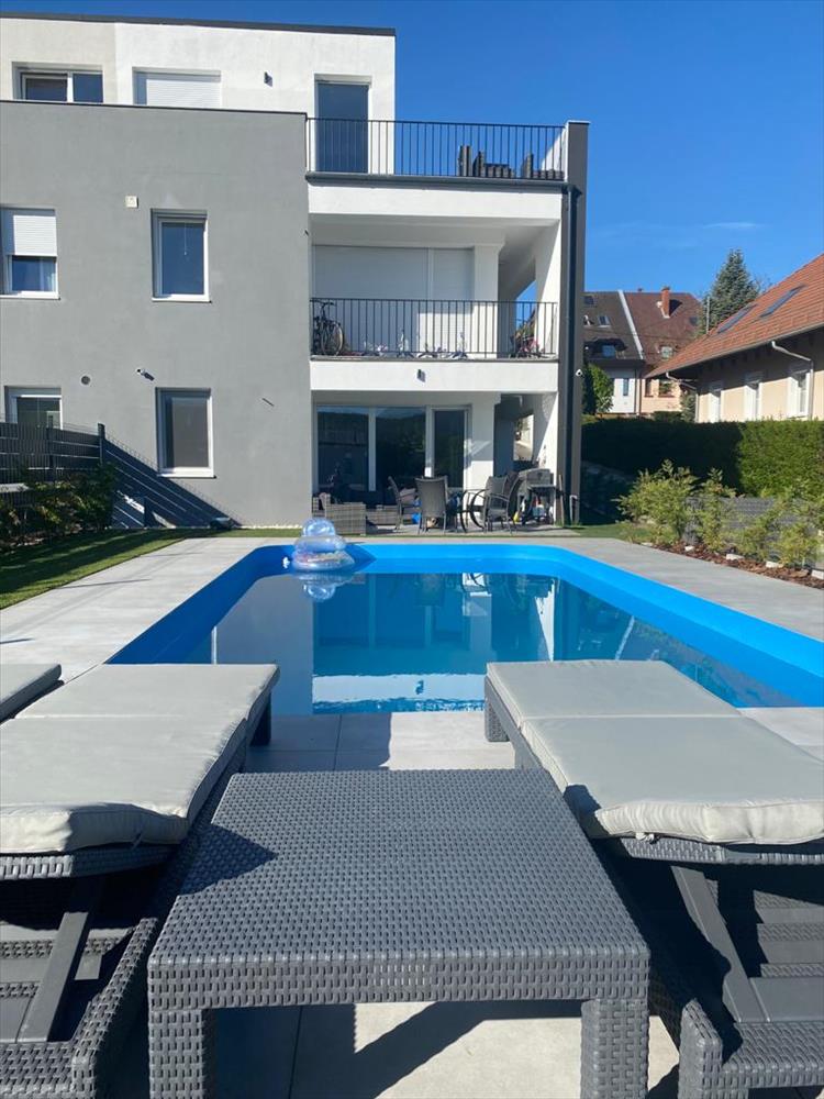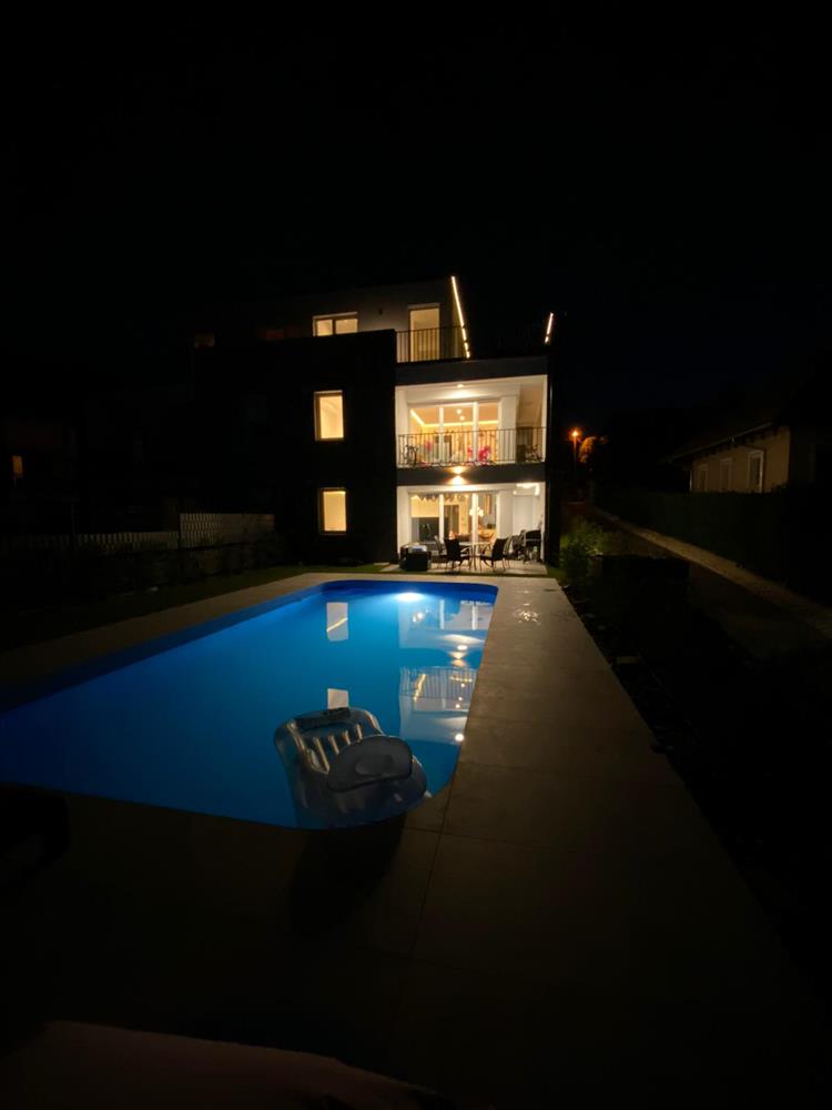 Medence 8x4 m fűthető, automata tisztító és keringtető rendszer, robot porszívó gondoskodik a tisztán tartásáról teljesen gondozás mentes.