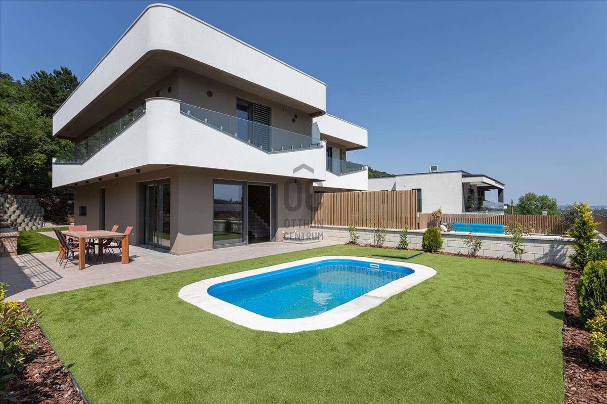 Eladásra kínálok Budapest III. kerület – Aranyhegyen 225 m²es panorámás ikerházfelet 400 m² telken medencével 5 szobás 4 fürdőszobás 2 állásos garázzsal