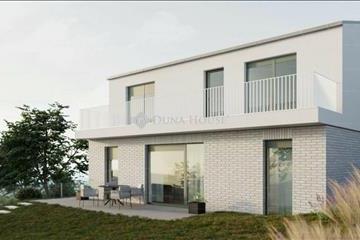 Aranyhegyen Panorámás modern Új építésű ikerház eladó! Eladásra kínálok egy minőségi referenciákkal rendelkező tapasztalt beruházó által épített aranyhegyi új építésű, 4 szobás (nappali + 3 hálószoba) ikerház felet magas műszaki tartalommal, kétállásos mélygarázzsal és 415 nm-es, sík, kizárólagos használatú, teljesen szeparált telekrésszel. Az egyedi adottságoknak köszönhetően az ikerház szinte teljesen önálló családi ház jellegű. Az ingatlan egy új építésű övezetben helyezkedik el, ahol már nem fog épülni több lakóház! a feltüntetett képek között megtalálhatóak a referenciamunkákról készült fotók is! a lakótér mérete nettó 123, 5m2, amelyben a földszinten tágas nappali-konyha-étkező, előtér, fürdő és egy háztartási helyiség, míg az emeleten 3 hálószoba és 1 fürdőszoba kap helyet. a földszinten, igény esetén még egy 5. Szoba is kialakítható. Az ingatlanhoz tartozik még egy 30nm-es kertre néző terasz, illetve egy 20nm-es emeleti erkély panorámás kilátással, valamint a 2db kényelmes méretű gépkocsi-beálló mellett egy gépészeti helyiség és egy 7 nm-es tároló a garázsszinten. II. LakásAz ikerház másik felét egy hasonló elrendezésű lakóingatlan képezi valamivel kisebb telekrésszel, mélygarázsi szint nélkül, felszíni parkoló beállókkal. Ennek kínálati ára: 207, 9 millió Ft. Energiatakarékos, környezettudatos kialakítás:Az ingatlan alapesetben bb energetikai besorolással rendelkezik, azonban napelemek telepítésével aa++ kategóriára fejleszthető – garantált energiatakarékosság és fenntarthatóság! Kiemelkedő műszaki tartalom:Monolit vasbeton födém, kerámia falazat;Hőtechnikailag méretezett grafitos hőszigetelés;Háromrétegű nyílászárók;Levegő-víz hőszivattyús, energiatakarékos hűtés-fűtési rendszer – mennyezet hűtés-fűtés, padlófűtés;Motoros redőnyök szúnyoghálóval;Magas minőségű hideg- és melegburkolatok, szaniterek, csaptelepek és belső nyílászárók. a közelben elérhetők: a 219-es és 160-as buszjáratok, játszótér, bolt. Átadás várható ideje: 2026 II. FélévHa felkeltette érdeklődését vagy bármilyen kérdése van, kérem hívjon bizalommal a hét minden napján!