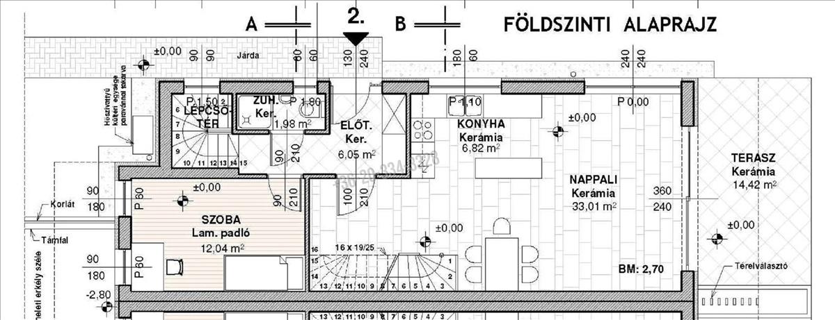 A lakótér 120 nm + garázs, + tároló, + terasz.