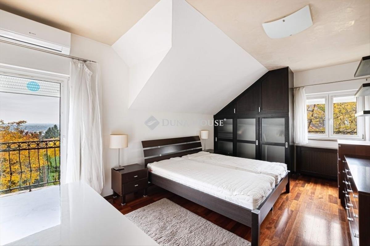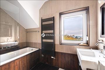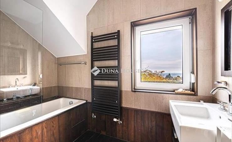 - Az emeleten 3 nagy méretű hálószoba található, egyedileg gyártott, asztalos által beépített bútorokkal, melyek természetesen a vételár részét képezik. Itt található még egy kádas fürdőszoba, külön wc és mindkét oldalon egy-egy panorámás erkély. Mindhárom szobának van erkélykapcsolata.