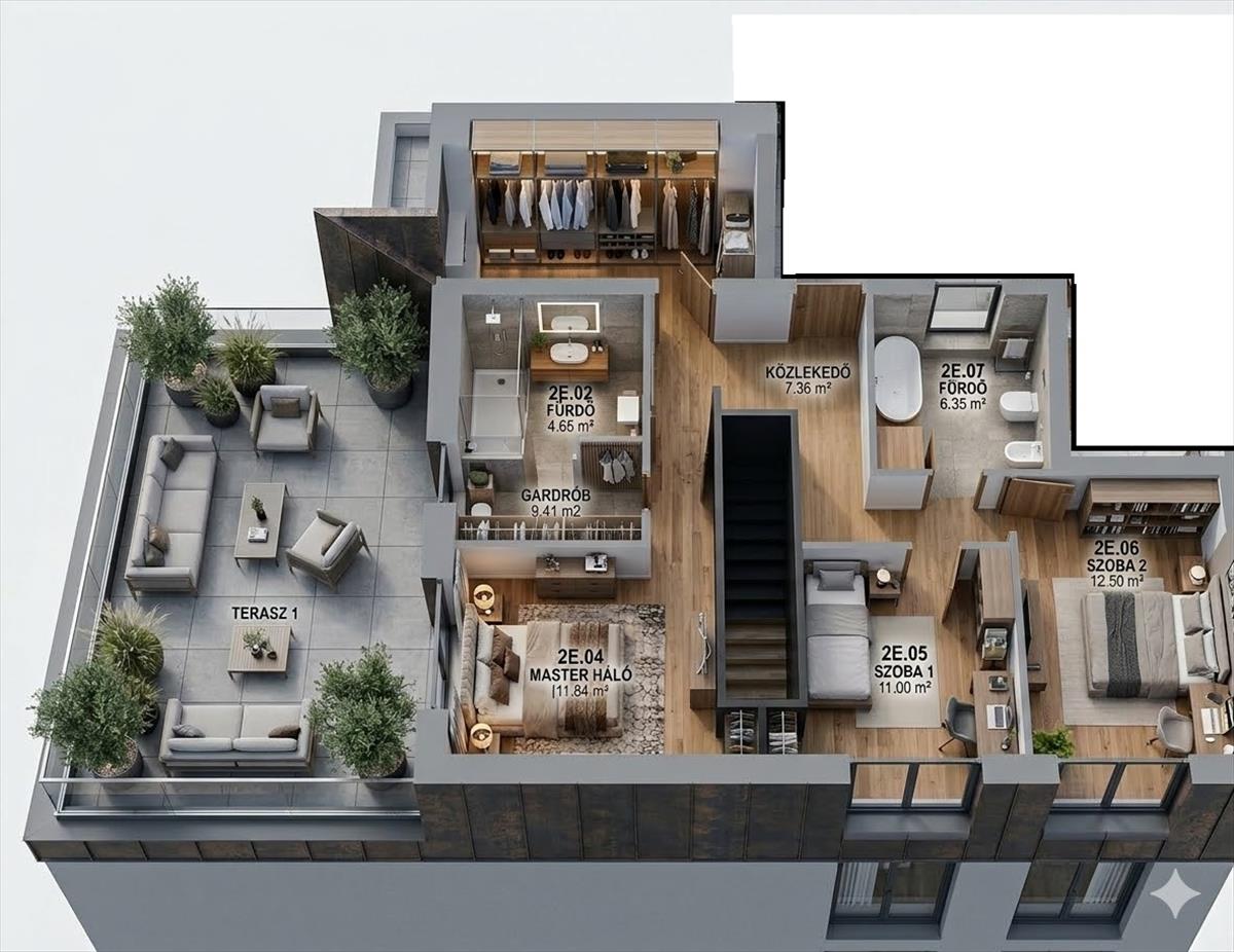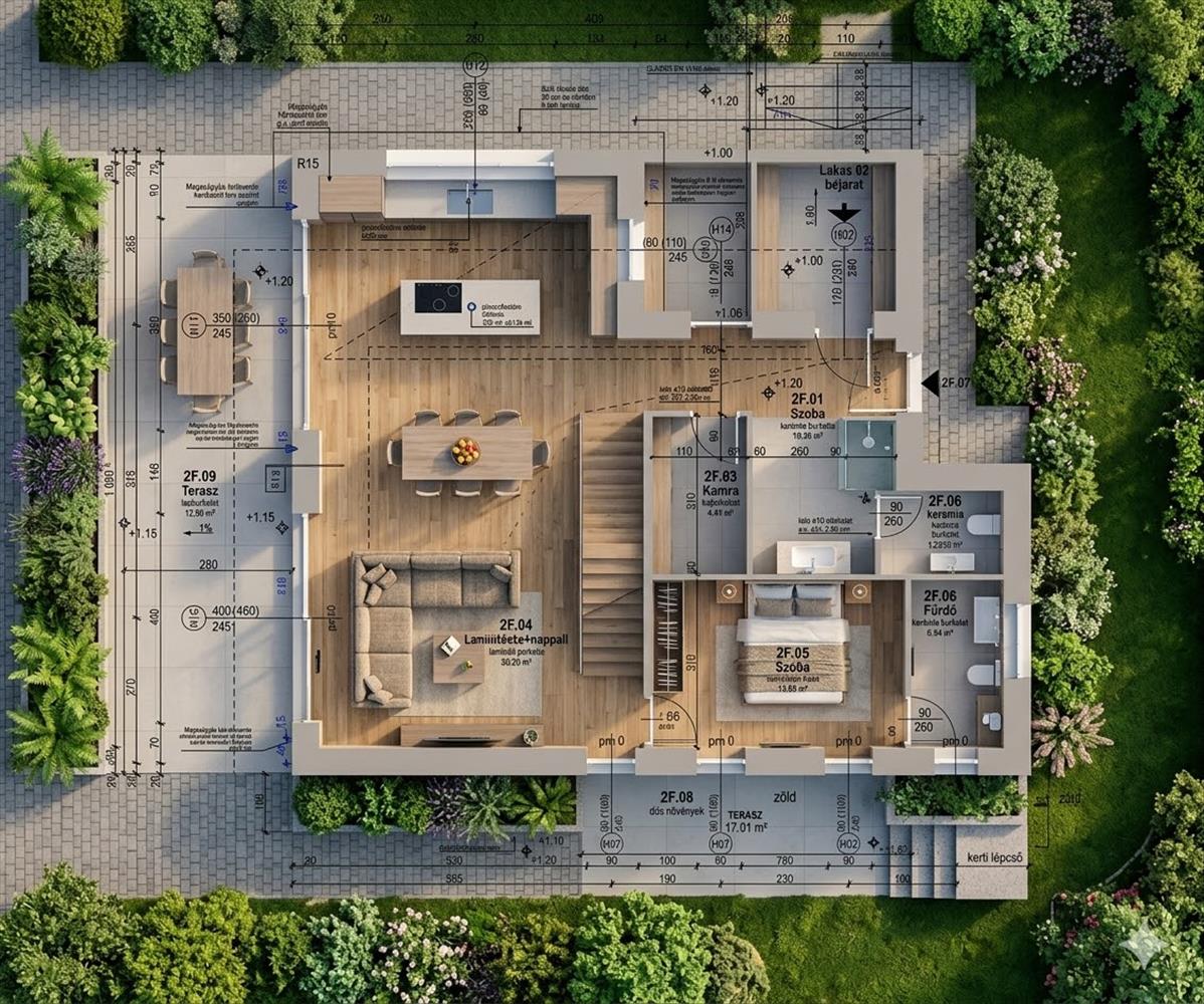 2. Lakás nettó lakótér: 160. 72m2, + 80m2 terasz + kert: 339 m2