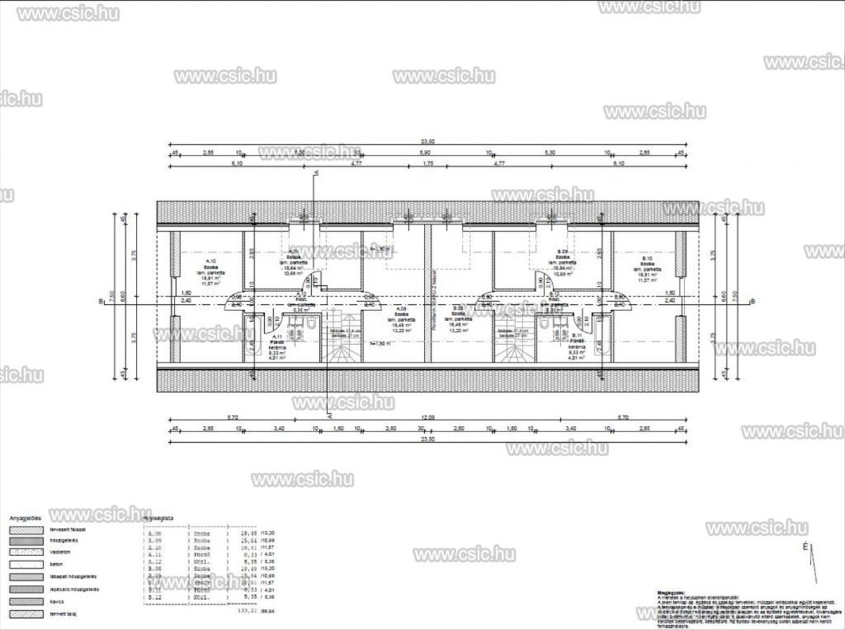 - Az emeleten 3 hálószoba (bruttó 19, 16, 18 nm ), közlekedő (5 nm ), lépcsőház, fürdőszoba (8 nm ) kapott helyet.