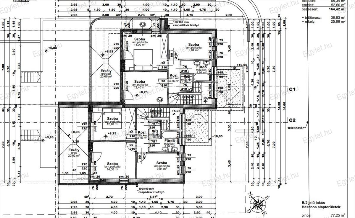 AZ örökpanorámás terasz és az erkély együttes mérete 64 nm.