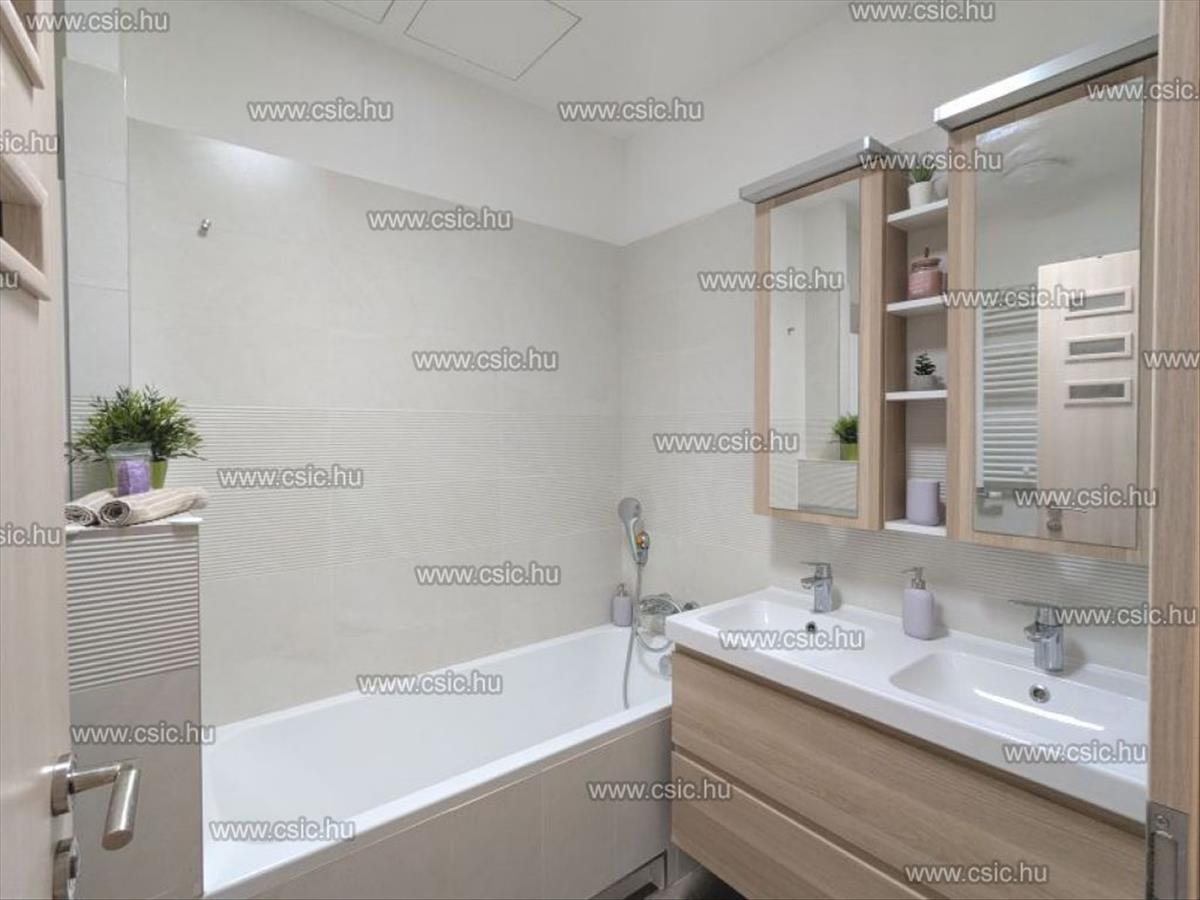 - kádas fürdőszoba, dupla mosdóval,