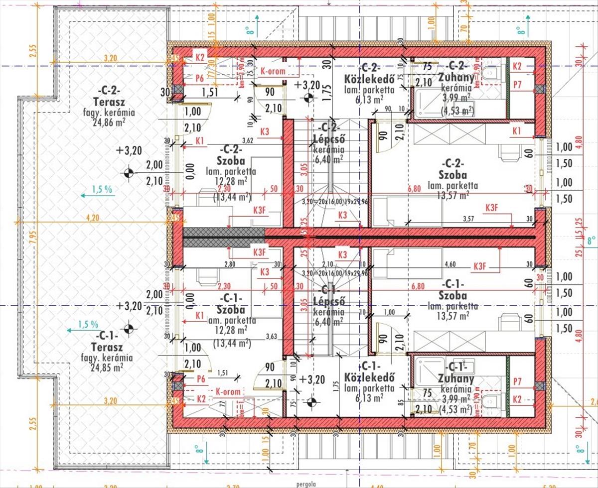 Emelet: 2 hálószoba, zuhanyzó+w. C. , Közlekedő, hatalmas panorámás terasz(25nm )