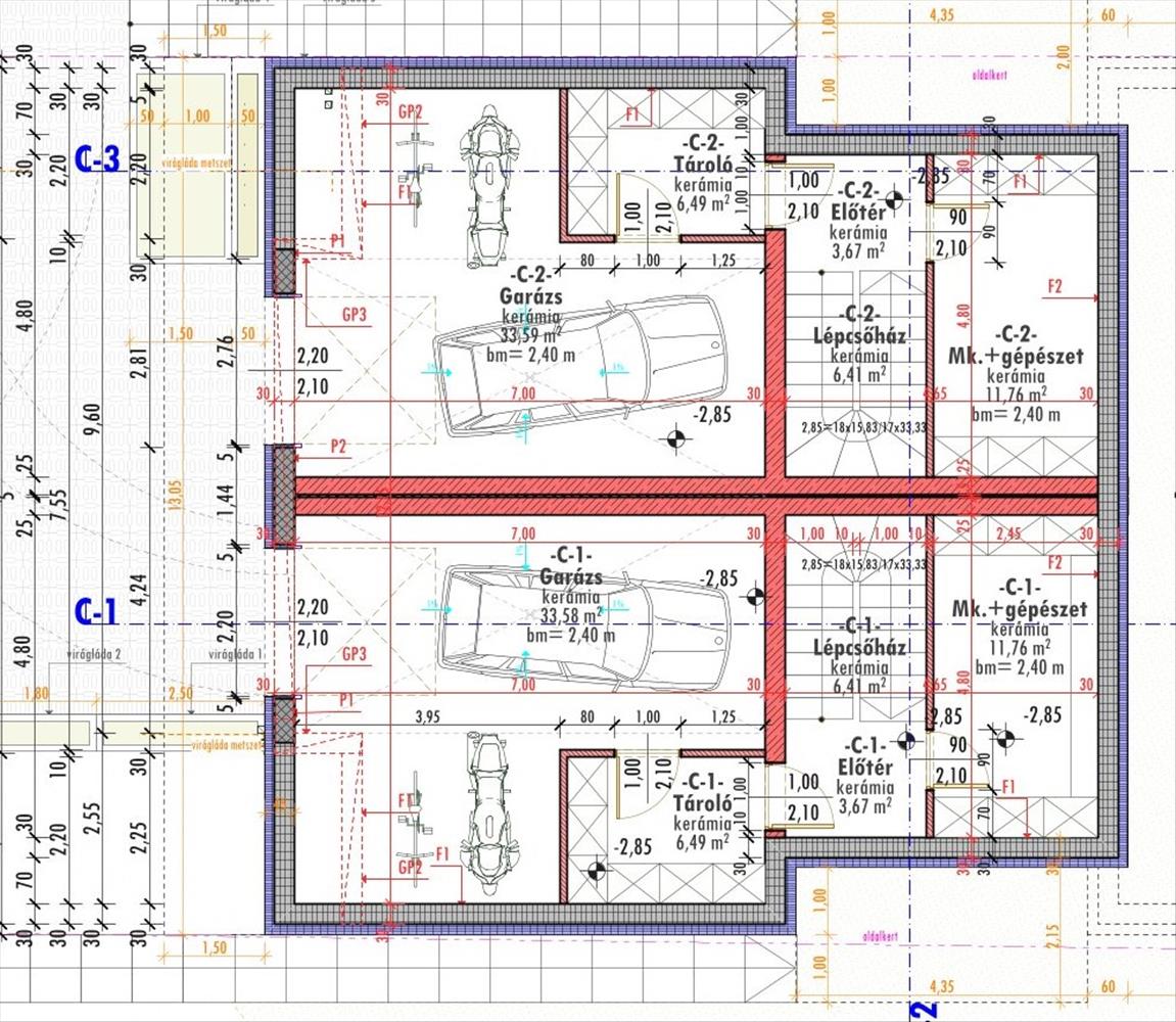 -1 Szint: garázs, tároló, lépcsőház, mosókonyha + gépészet.