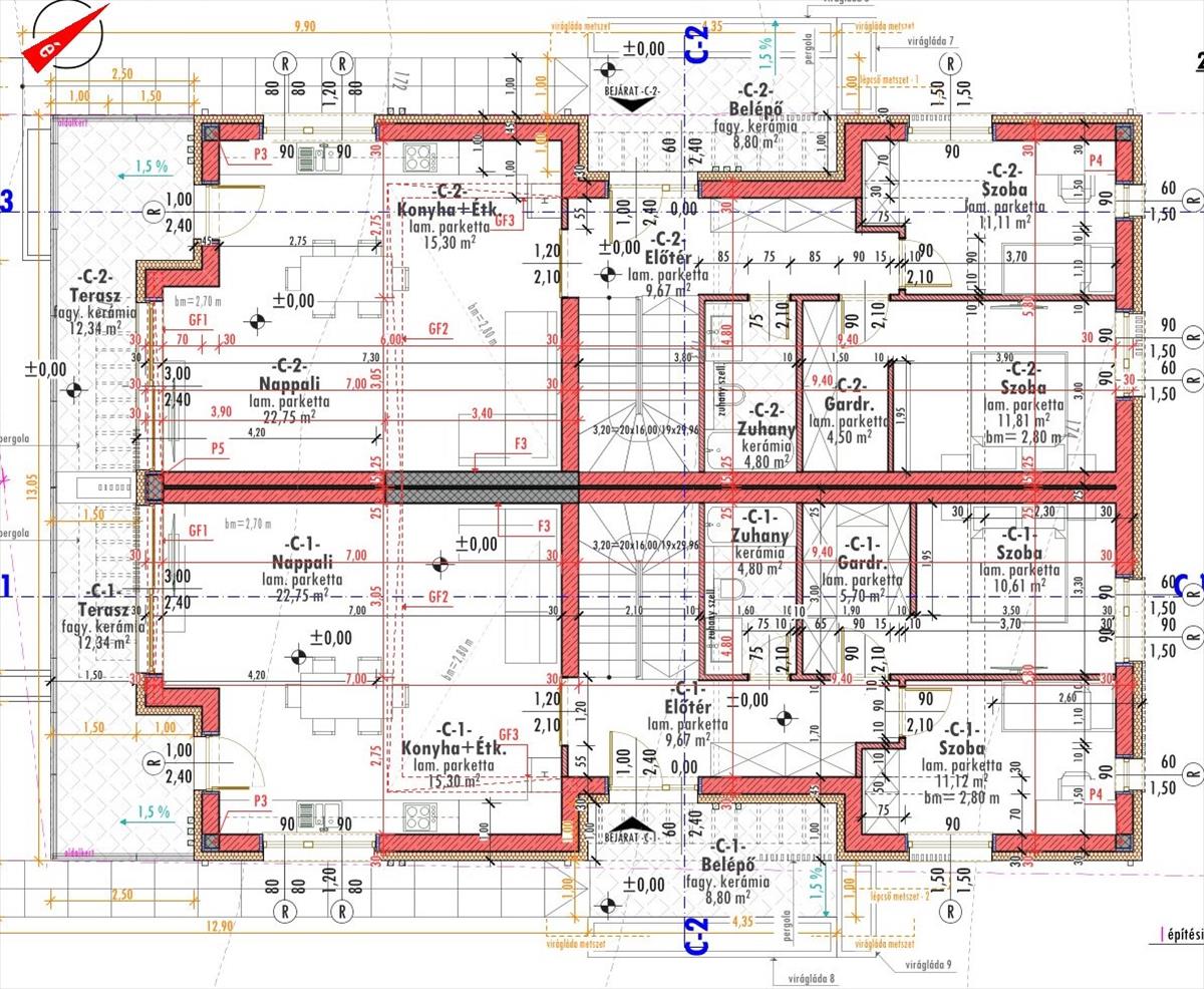 Az ingatlan belső elrendezése, szaniterek, burkolatok választhatóak!