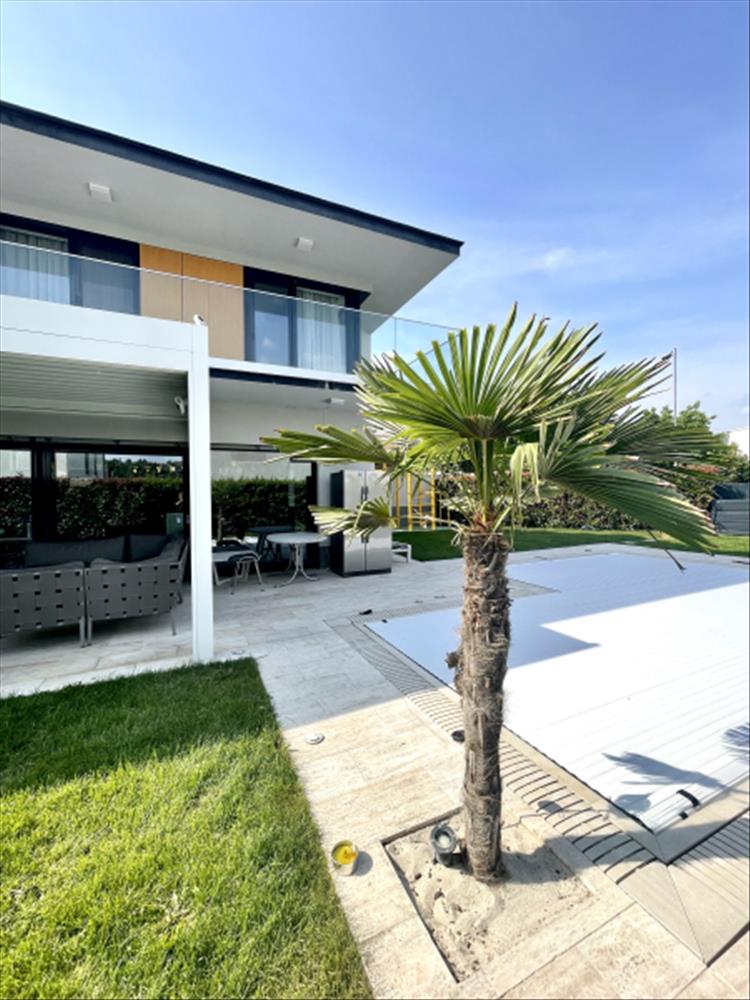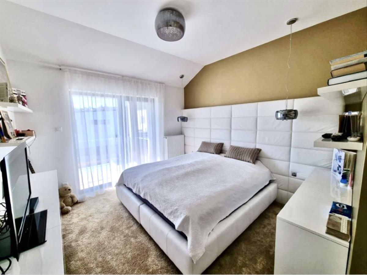 3. Ker, Harsánylejtőn, kifejezetten elegáns környezetben, szép, modern családi házak övezetében eladó egy 180 m2-es, 4+1 szobàs, 3 fürdőszobás, tágas, napfényes nagy teraszos, Luxusszínvonalon kivitelezett ikervilla; 2 állásos garázzsal, kerti tárolóval, 2 db autóbeállóval.