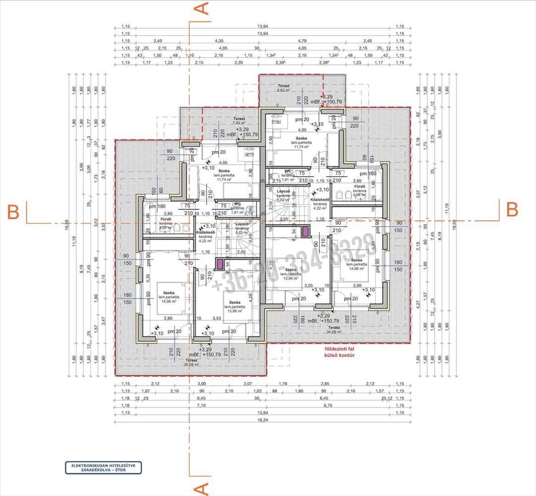 A csatolt alaprajz tájékoztató jellegű, a földszinti elrendezésben módosítások történtek (nagyobb nappali, közlekedő).