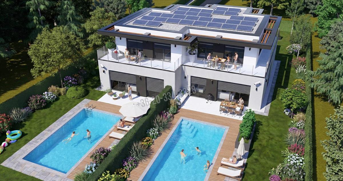 Eladó III. kerület Aranyhegyen új építésű, amerikai konyhás nappali + 3. 5 Szobás, dupla komfortos, garázsos, örökpanorámás ikerház 650 nm-es telekkel!
