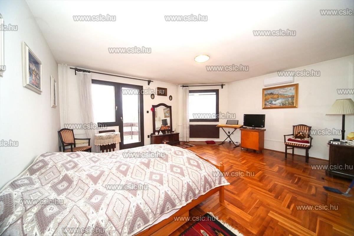 A középső szinten található a ház egyik legszebb helyisége: egy közel 30 m²-es, tágas hálószoba erkéllyel, ahonnan szintén lenyűgöző panoráma tárul elénk. Ezen a szinten még egy kisebb hálószoba, fürdőszoba és külön mosdó is helyet kapott. a garázs is innen közelíthető meg, közvetlenül kapcsolódik a lakótérhez, így télen-nyáron kényelmes parkolást biztosít.