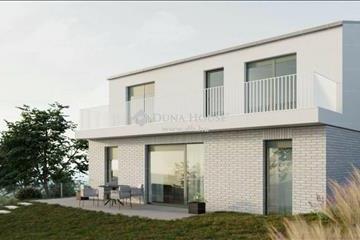 Aranyhegyen Panorámás modern Új építésű ikerház eladó!Eladásra kínálok egy minőségi referenciákkal rendelkező tapasztalt beruházó által épített aranyhegyi új építésű, 4 szobás (nappali + 3 hálószoba) ikerház felet magas műszaki tartalommal, kétállásos mélygarázzsal és 415 nm-es, sík, kizárólagos használatú, teljesen szeparált telekrésszel.