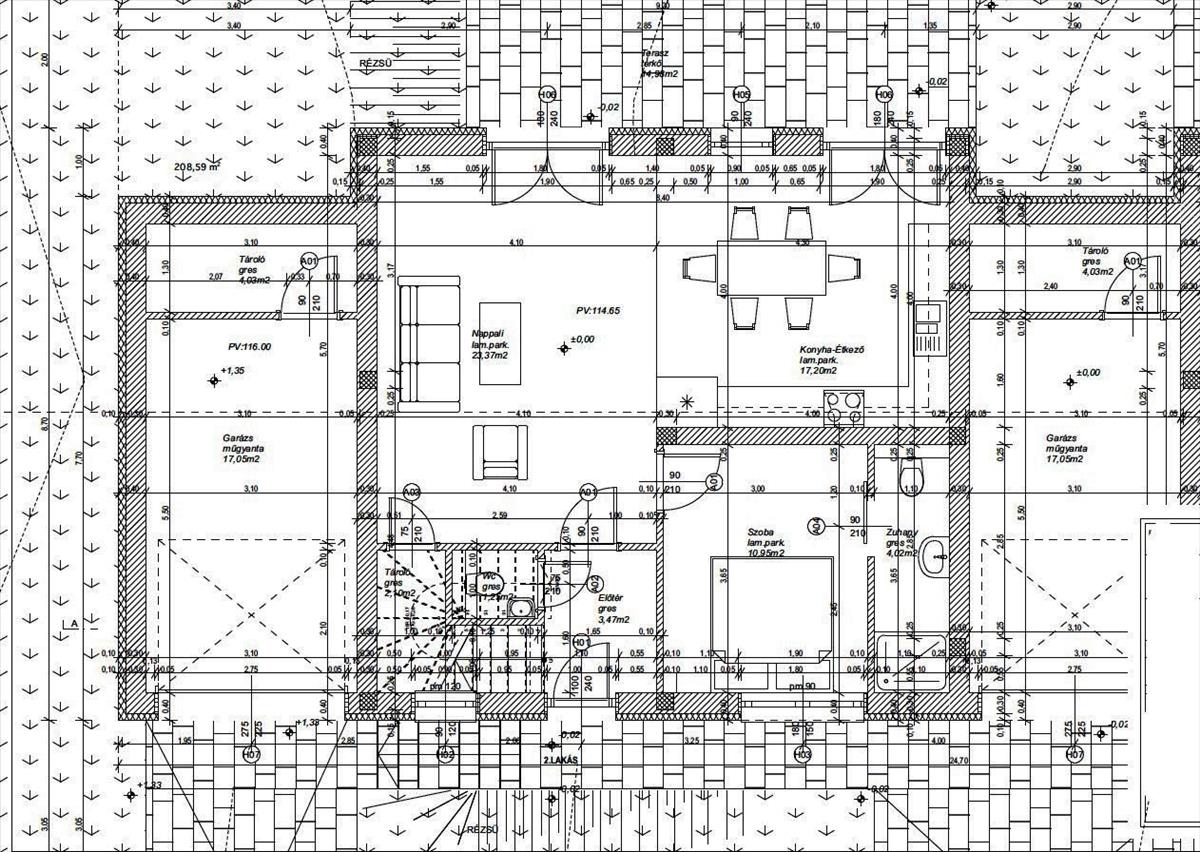 garázs + tároló (17, 05m2 + 4, 03m2)