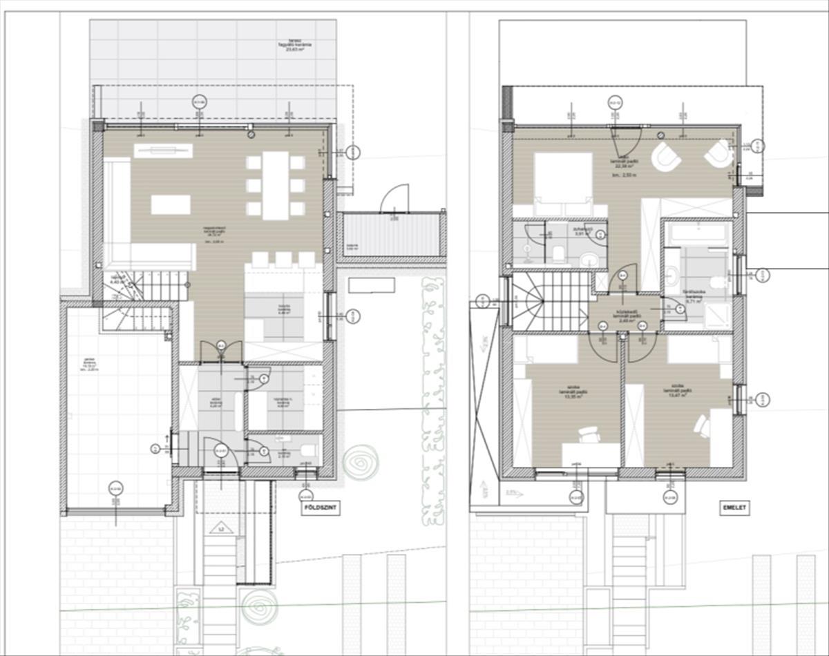 Az eladásra kínált örök panorámás ikerház a legfelső utcájában, a Turbolya közben épül, gyönyörű kilátással a földszintről és emeletről egyaránt. a környező telkeken befejezett, modern stílusú házakkal, igényes környezettel. a két ikerfél csak a garázsokkal kapcsolódik egymáshoz, egymástól független utcai bejáratokkal és szeparált kerttel rendelkeznek.